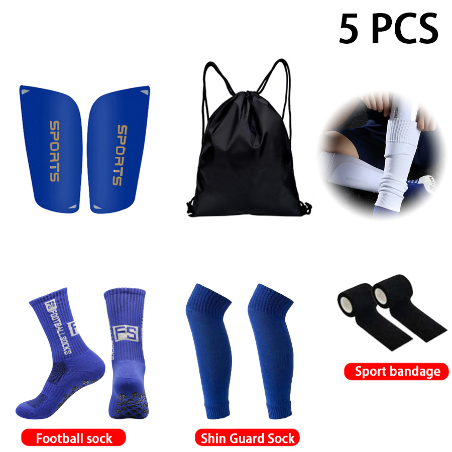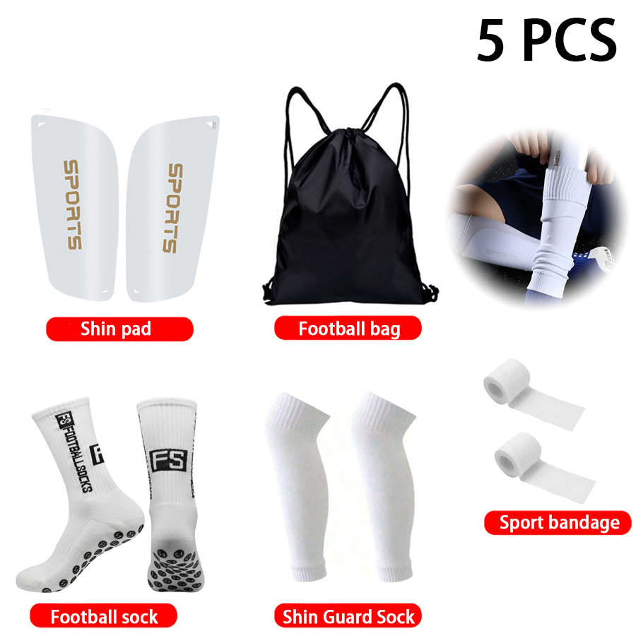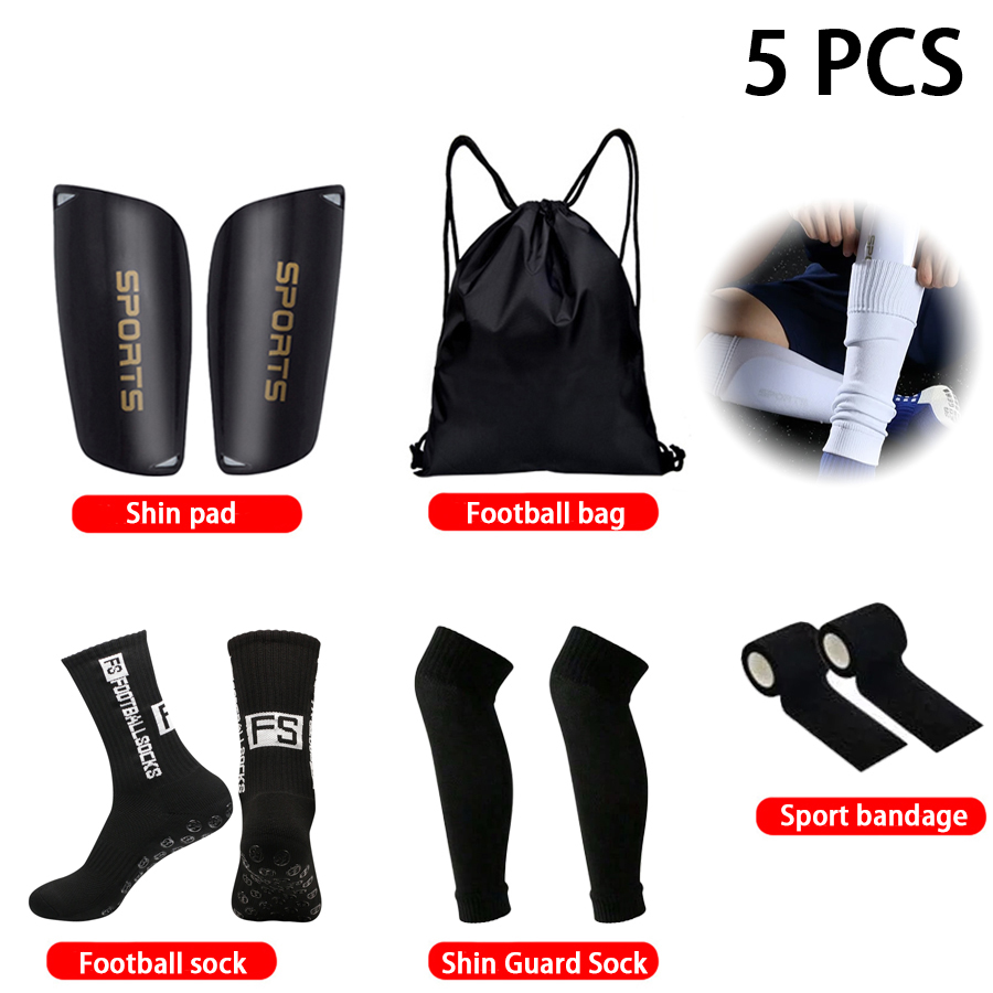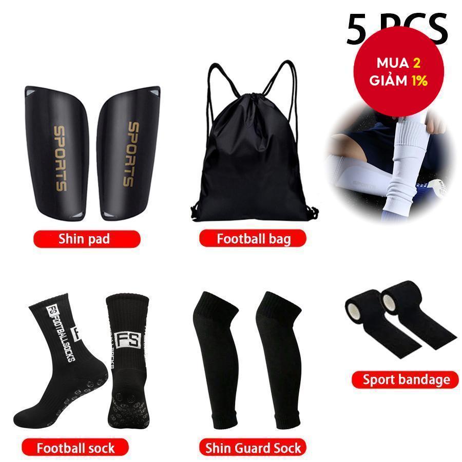 Bộ thể thao bóng đá 5 trong 1 | Vớ silicone + Bó ống chân + Bảo vệ ống đồng + Băng quấn + Túi dây rút | Đen/Trắng/Xanh/Đỏ