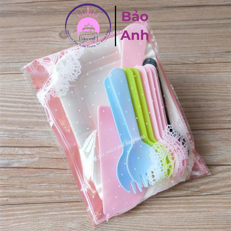 Set Dao Dĩa Nĩa nến sinh nhật dùng 1 lần, bộ phụ kiện ăn bánh kem