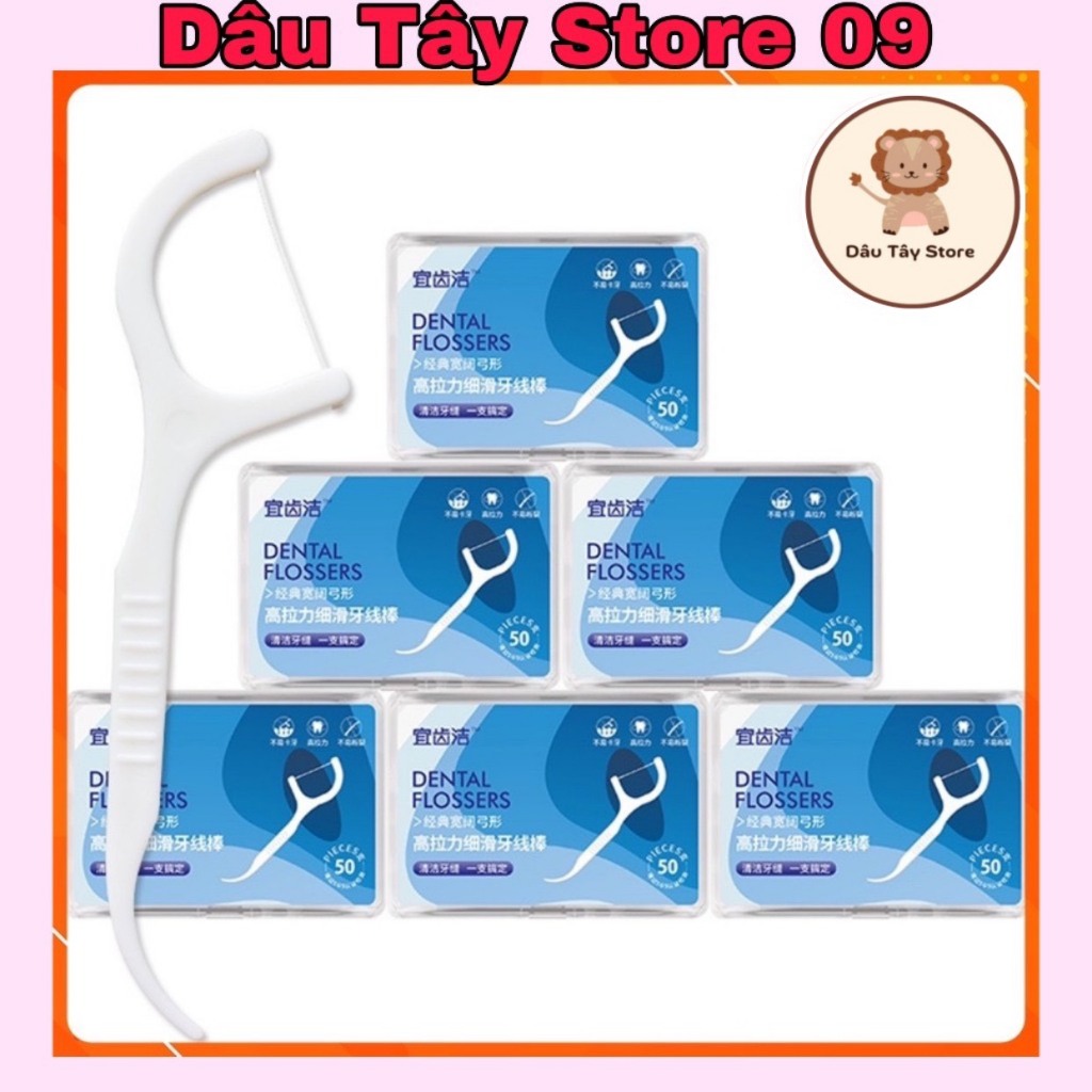 [Combo 6 hộp] Tăm chỉ nha khoa hộp 50 Cây Dental Flossers tăm chỉ vệ sinh răng miệng - DTST09