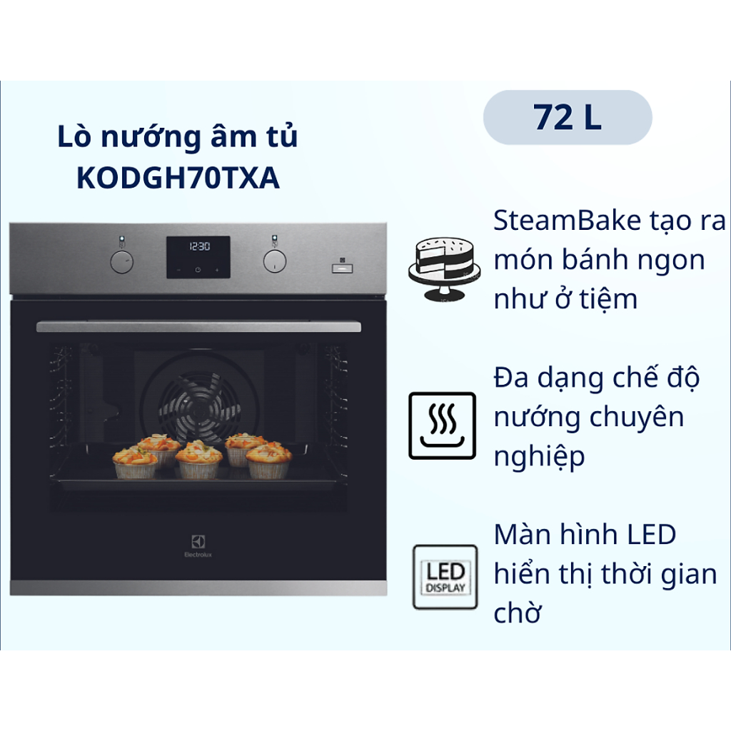 [TẤN TÀI LĐ 0Đ] KODGH70TXA - Lò Nướng Âm Tủ 60cm UltimateTaste 500 Electrolux KODGH70TXA (72L) - CHÍNH HÃNG