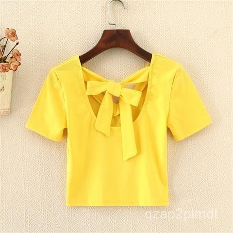 Nữ T Áo thun ngắn tay mùa hè mới cho phụ nữ, áo crop top không lưng đa năng với dây đai cao