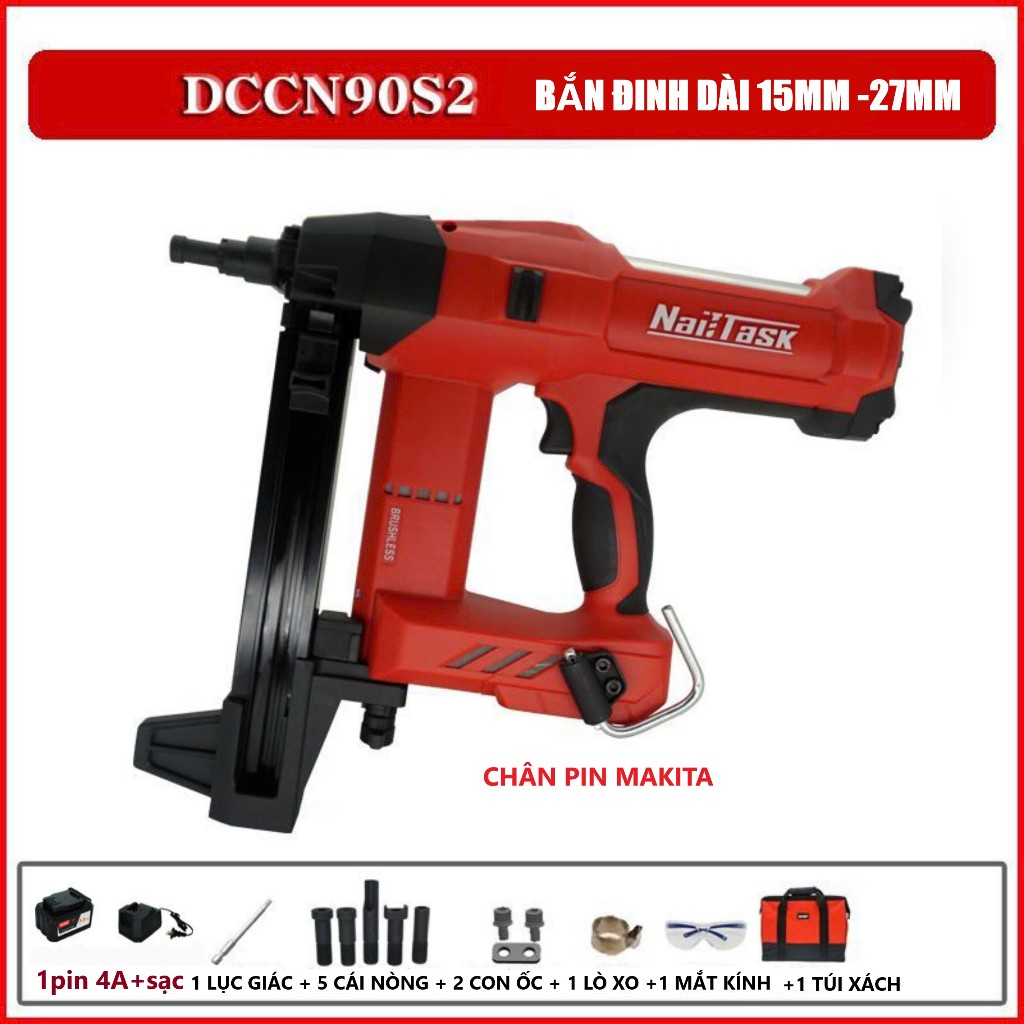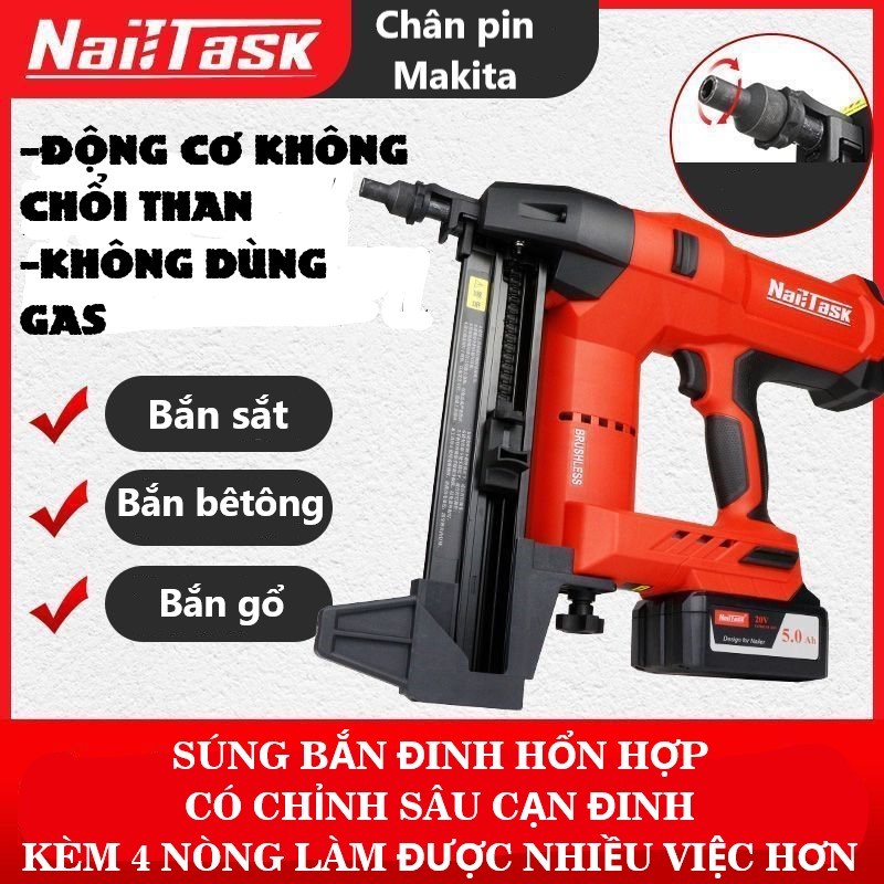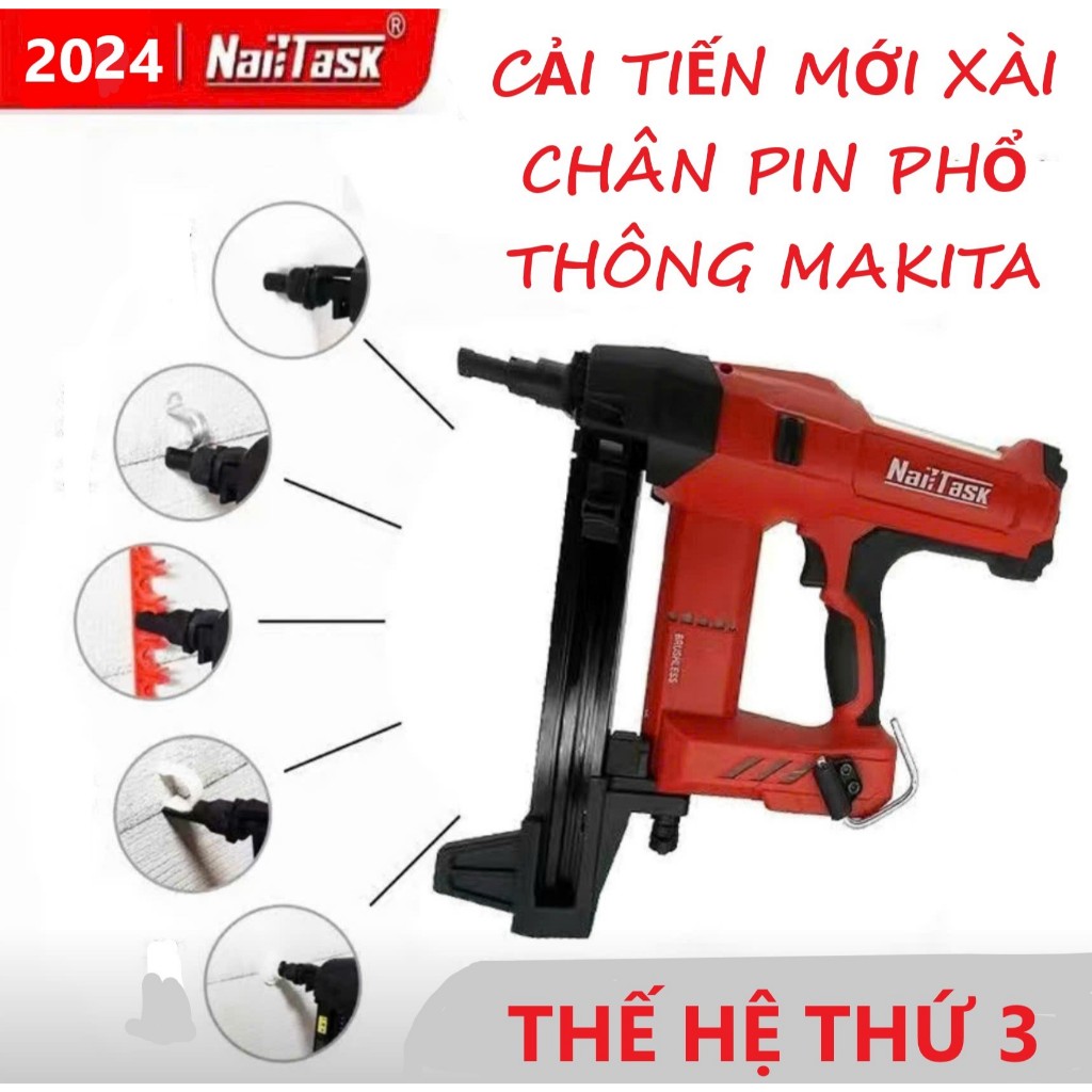 Máy băn đinh bê tông NAILTASK thế hệ 3 cải tiến chân pin makita phổ thông