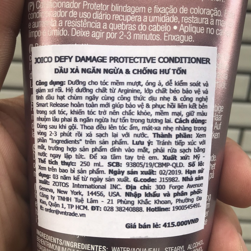 [ NA ] Dầu gội xả ngăn ngừa & chống hư tổn JOICO DEFY DAMAGE PROTECTIVE 300ml/250ml ( New 2025 )