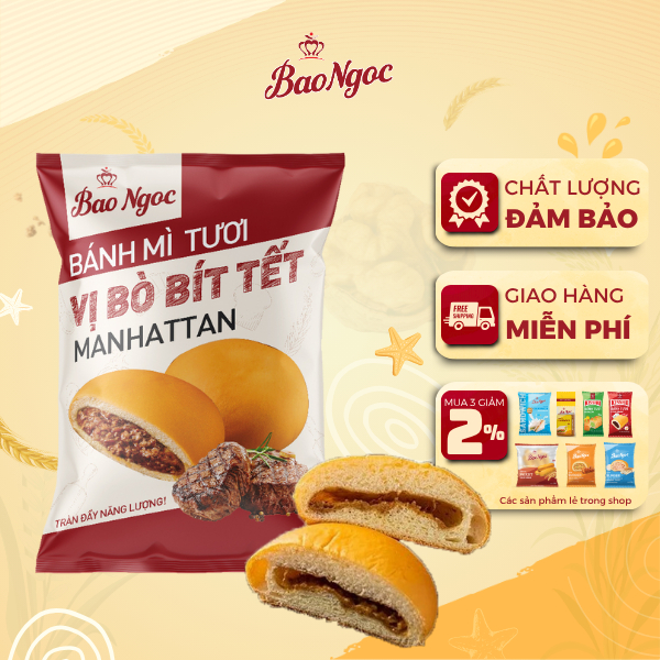 [1-5 Chiếc] Bánh Mì Tươi Burger Bò Bít Tết Manhattan Bảo Ngọc Đẫm Nhân Thịt Bò (60g)