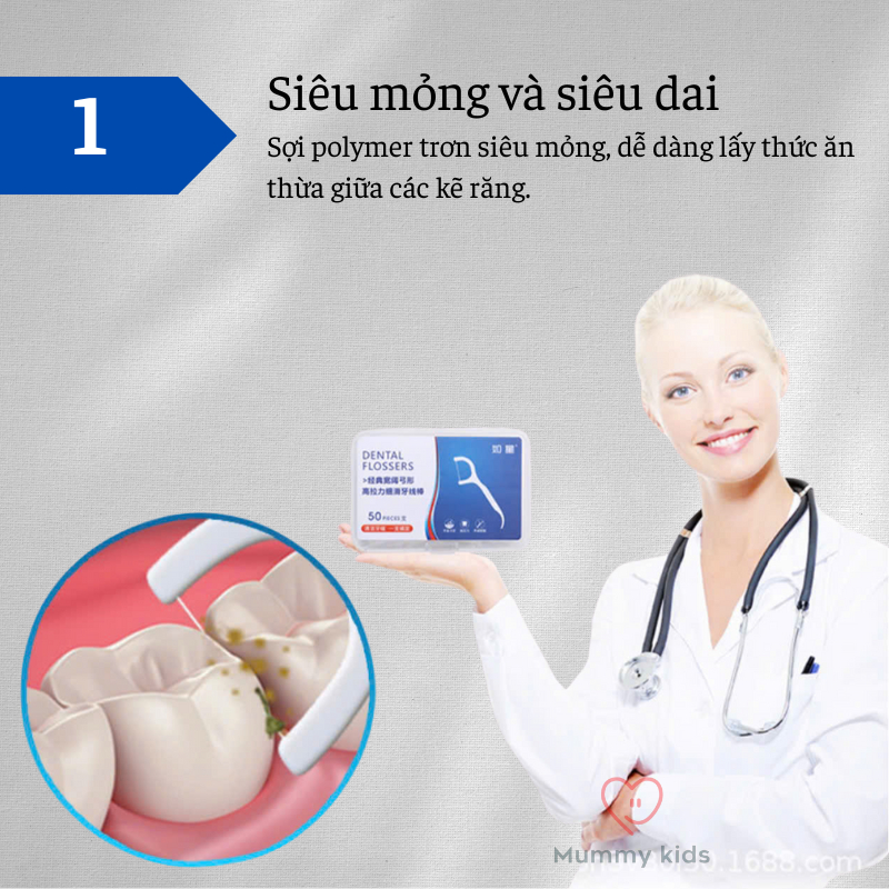 Tăm chỉ nha khoa DENTAL FLOSSERS, tăm nha khoa xỉa răng vệ sinh, làm sạch răng miệng, hàng loại 1, hộp/50 chiếc