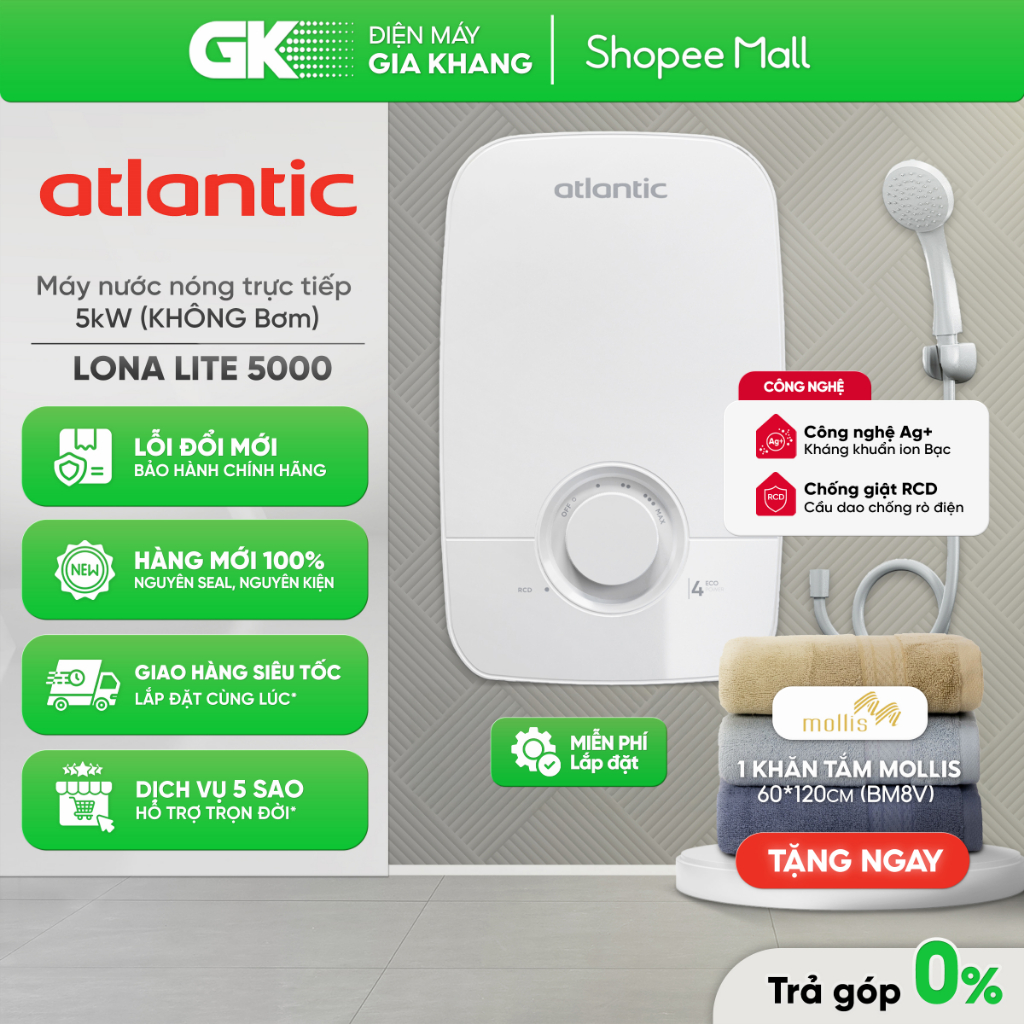 [ATLANTIC - Miễn Phí Công Lắp HCM] LONA PLUS 5000 | LONA LITE 5000 | LONA LITE 4000 Máy Nước Nóng Trực Tiếp Atlantic Khô