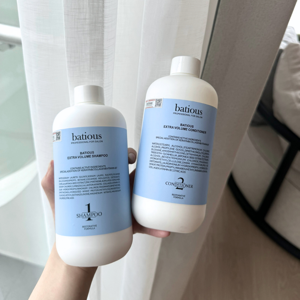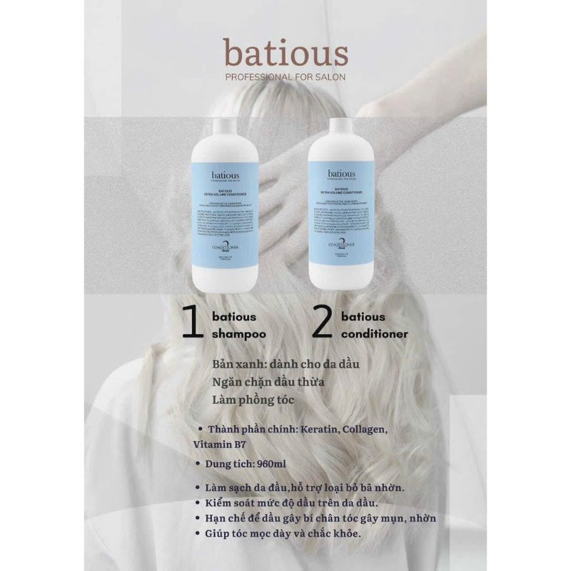 Combo dầu xả - dầu gội BATIOUS xanh extra volume 500ml phù hợp cho tóc dầu, giảm dầu nhờn, phồng chân tóc