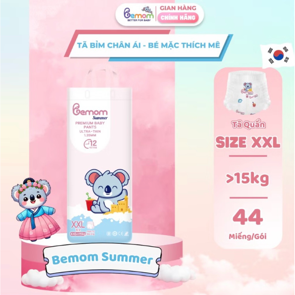 (Combo 5 tặng 1) Tã Bỉm Hàn quốc Bemom SUMMER siêu mỏng mềm, thấm hút tốt đủ size NB/S/M/L/XL/2XL/3XL/4XL cho bé