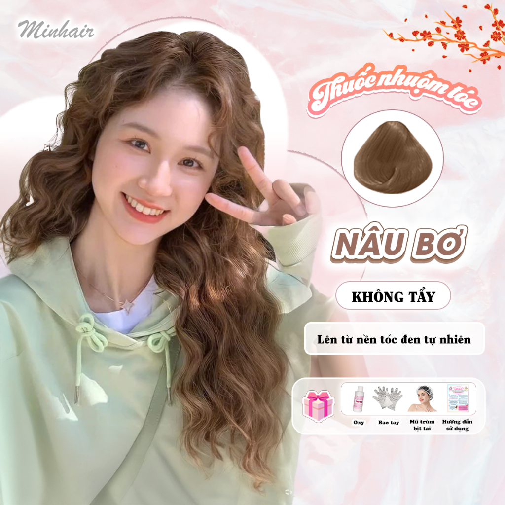 Thuốc nhuộm tóc Nâu , màu Nâu Bơ,Không tẩy, Kèm Oxy Trợ Nhuộm, Trùm Tóc, Bịt Tai và Bao Tay MIN.HAIR