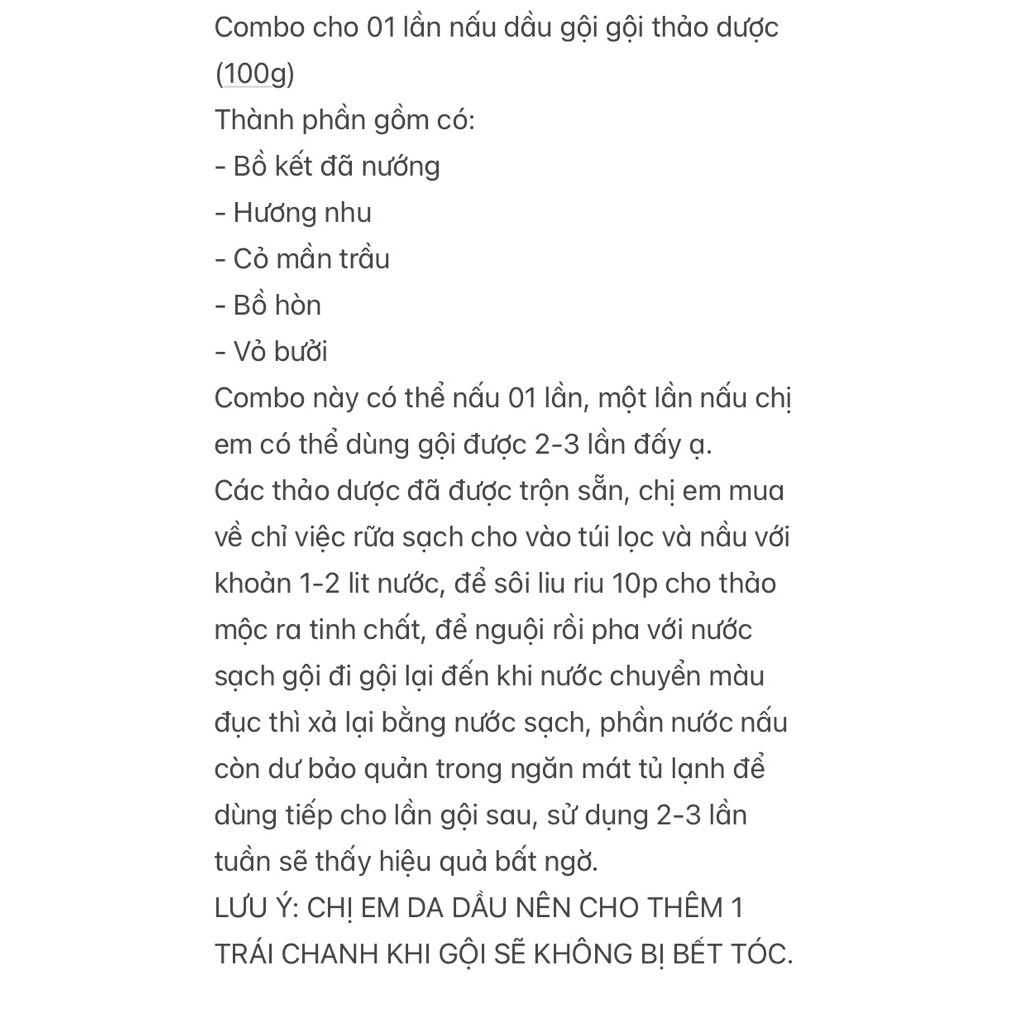 Bồ kết, hương nhu, mần trầu, bồ hòn, vỏ bưởi (combo 100g thảo dược nấu nước gội đầu)
