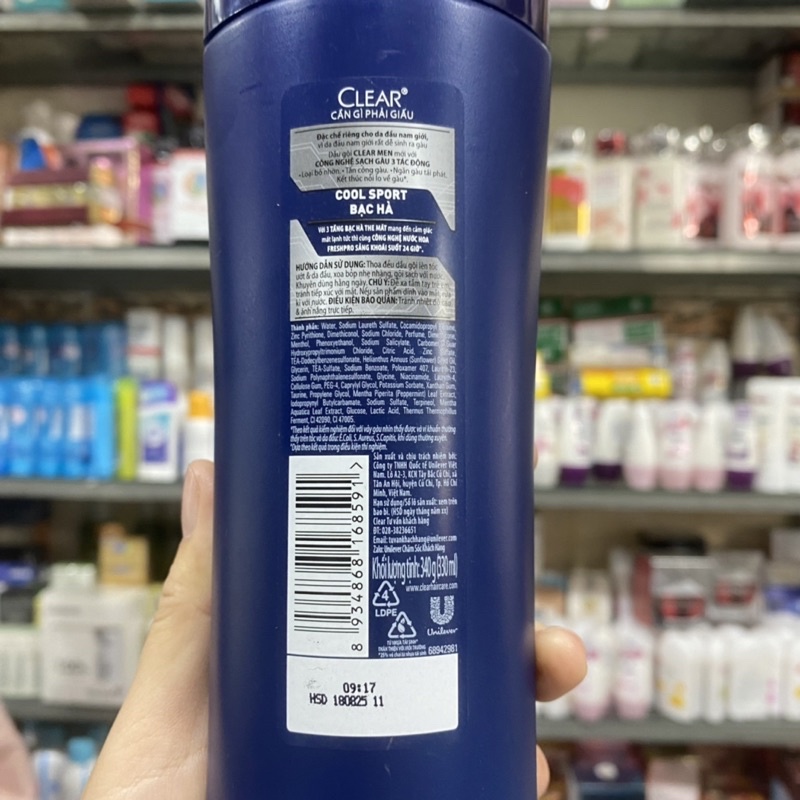 Dầu gội Clear Men Sạch Sâu Cool Sport Bạc Hà 340g (330ml)