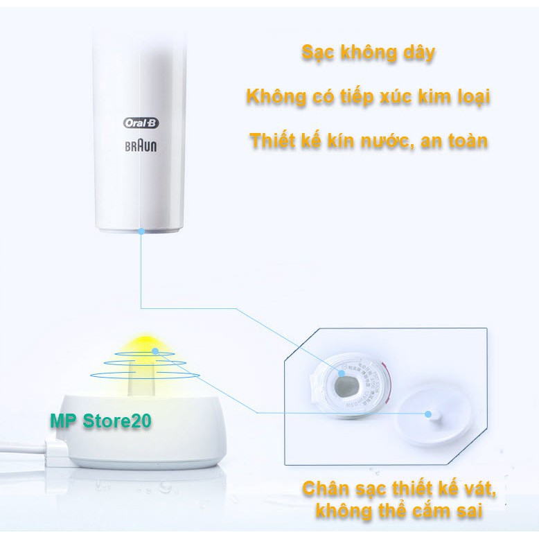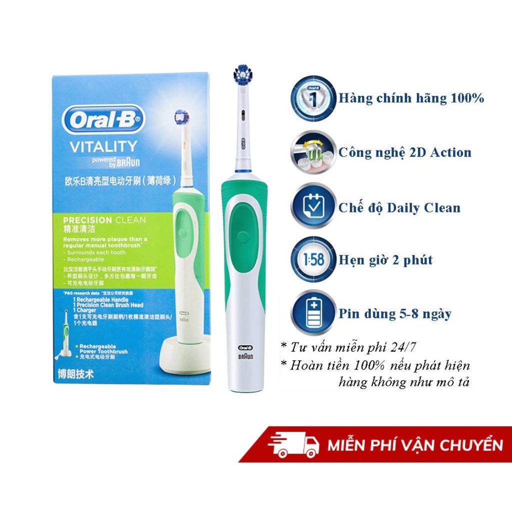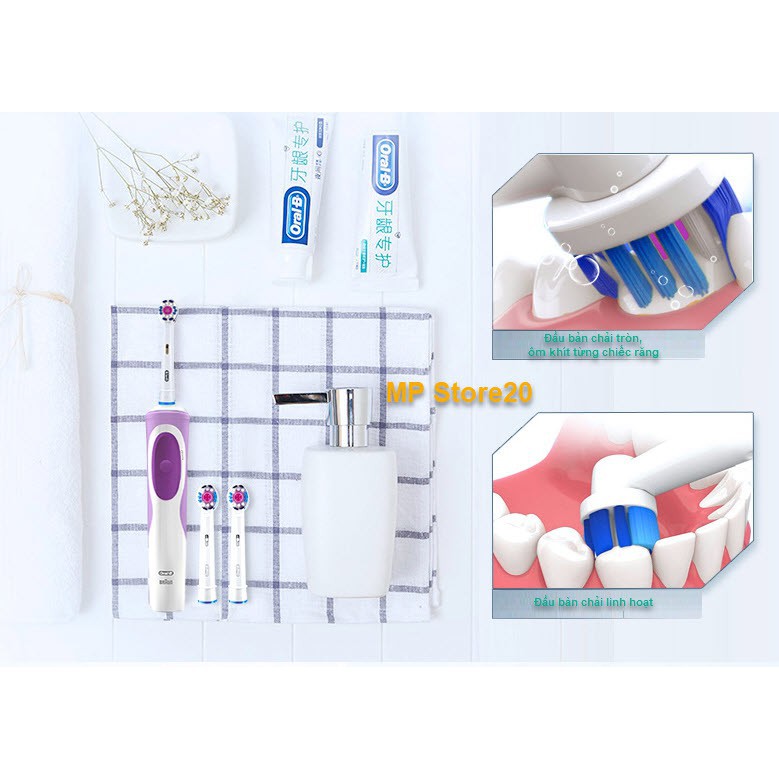 Bàn chải điện đánh răng tự động làm sạch răng, hạn chế viêm nướu. Có hẹn giờ 2 phút chuẩn nha khoa