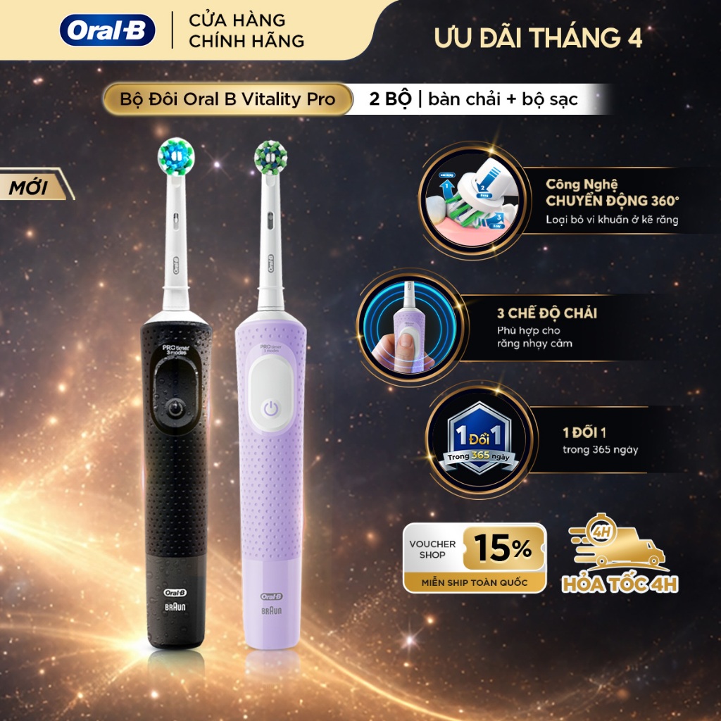 [Combo Couple] 2 Bàn Chải Điện ORAL-B VITALITY Pro 3 CHẾ ĐỘ giúp làm Sạch Sâu Từng Kẽ Răng