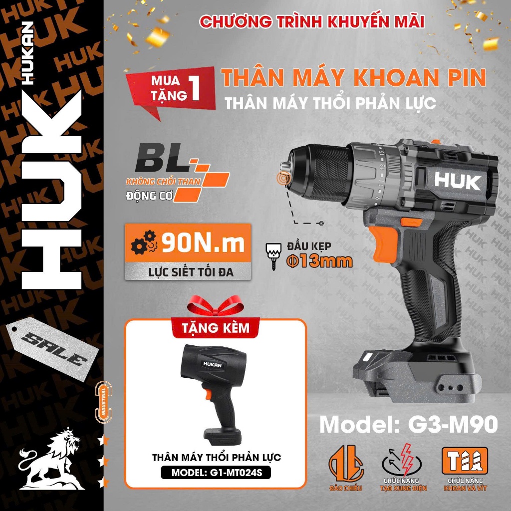 Máy khoan pin HUKAN Gen3 G3-M90, Có Tạo xung, Lực siết 90Nm, 3 chức năng 13 ly - Chân phổ thông