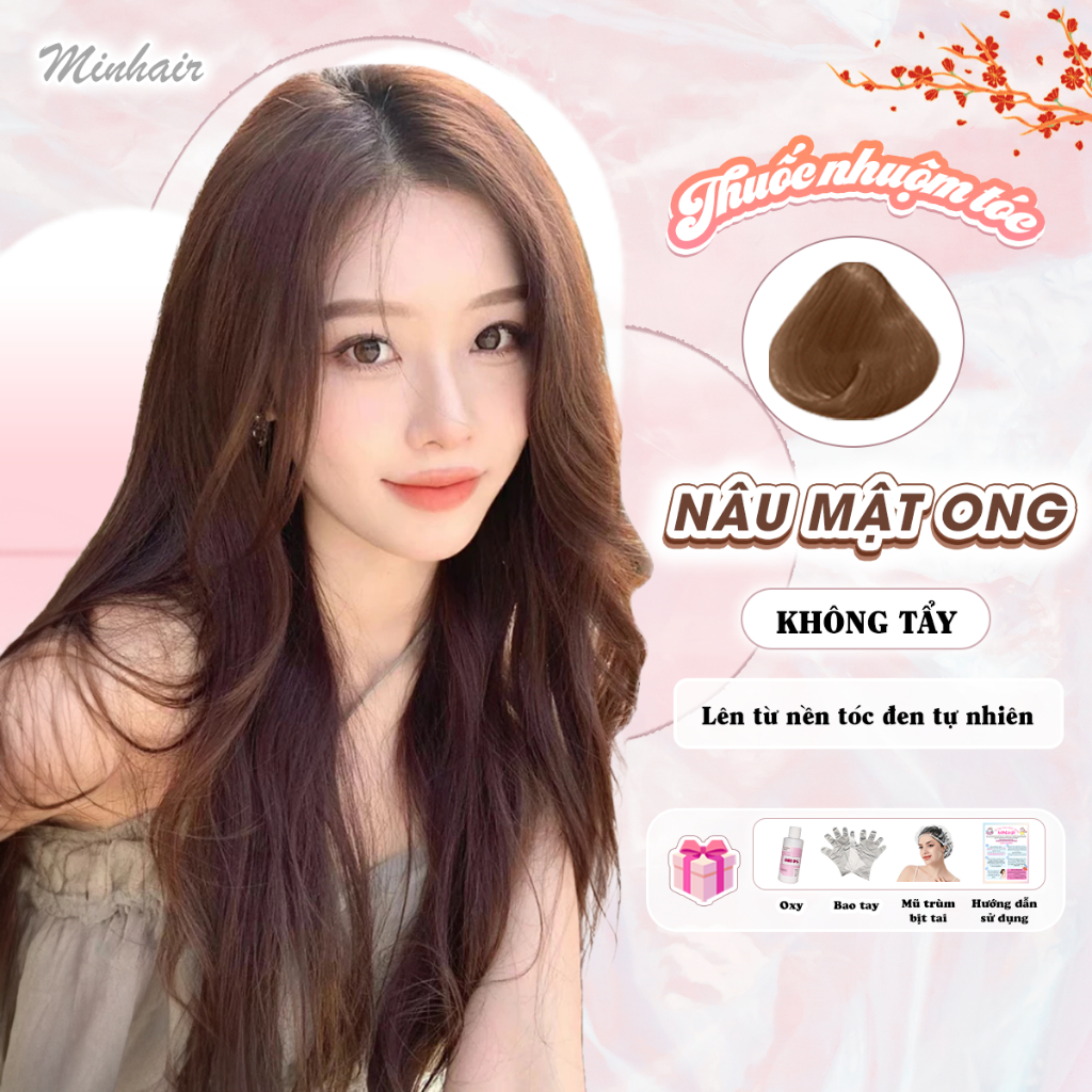 Thuốc nhuộm tóc Nâu, Thuốc nhuộm tóc màu Nâu Mật Ong Minhair, tặng kèm oxy trợ dưỡng và bao tay