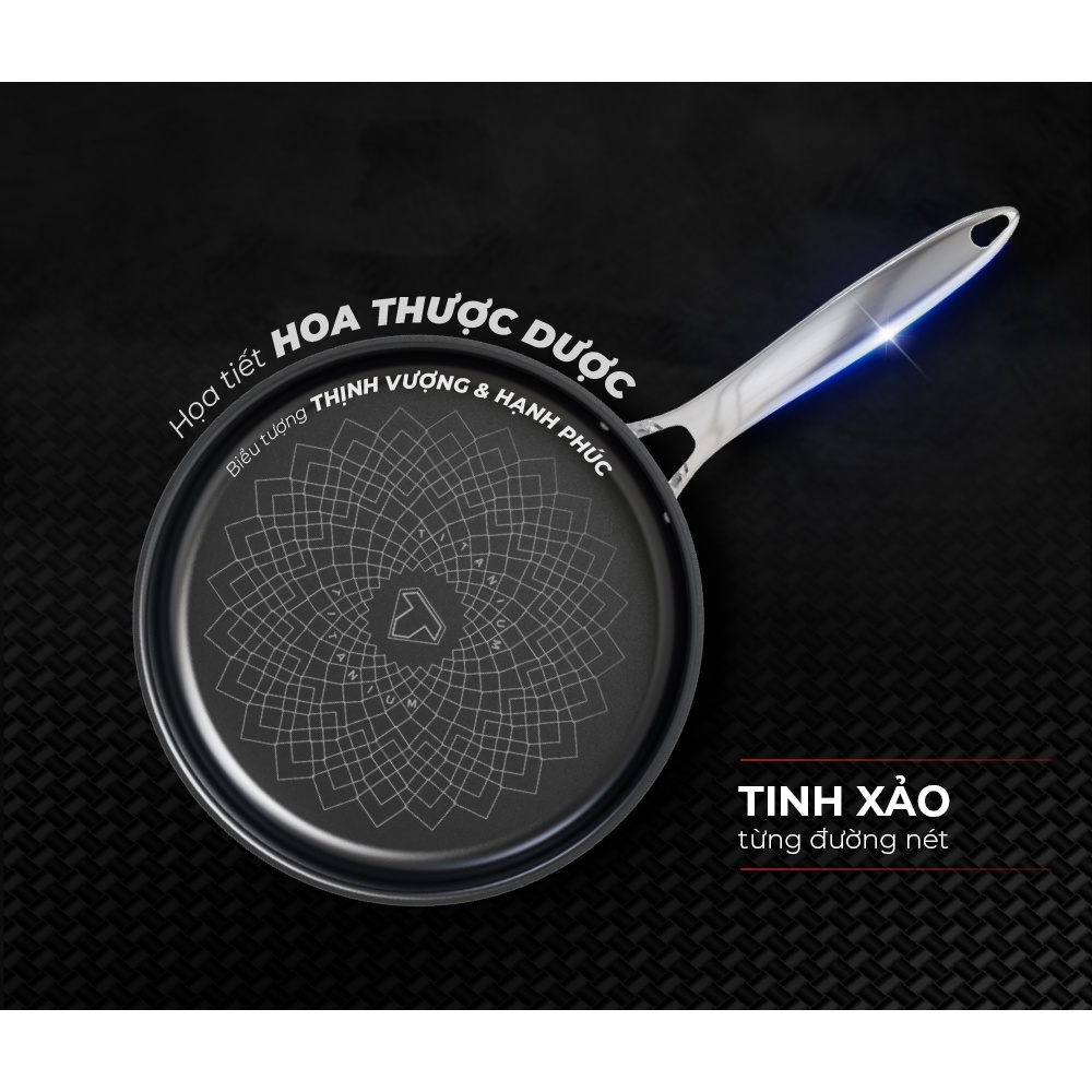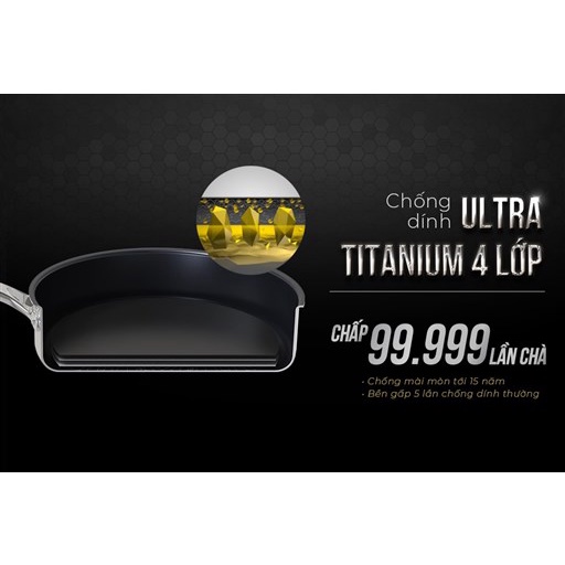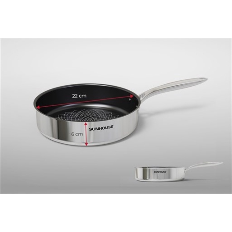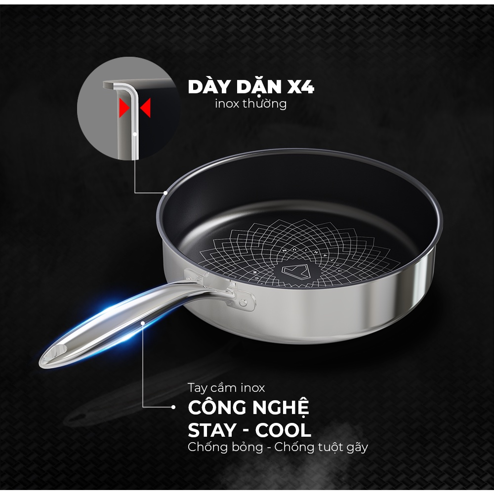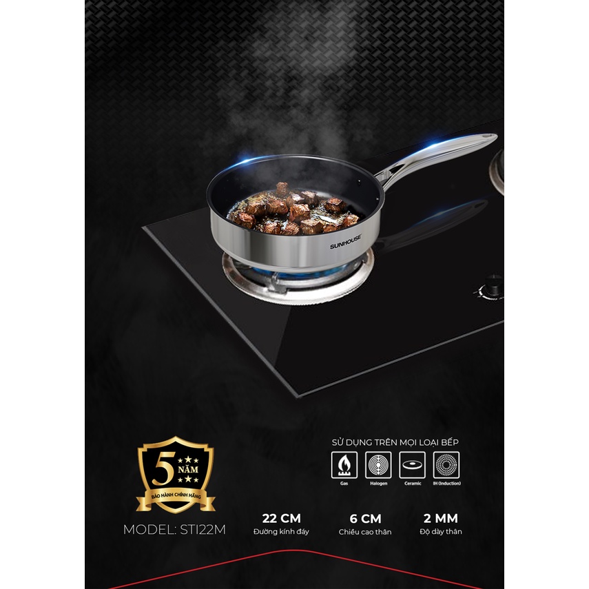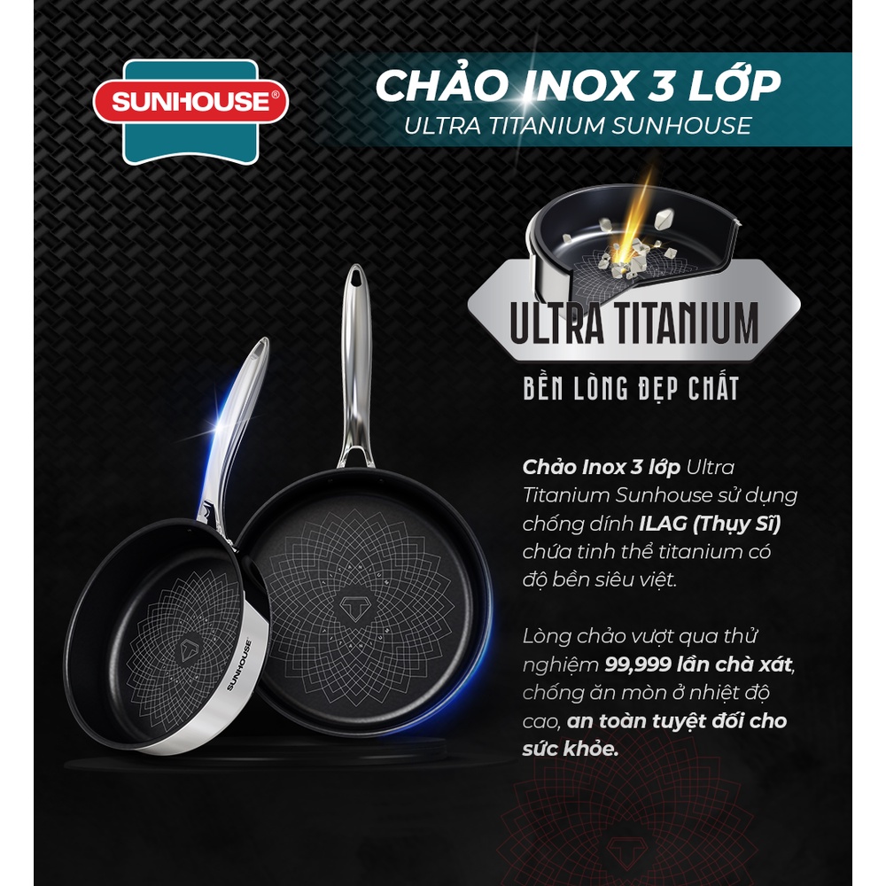 Chảo inox cao cấp liền đáy 3 lớp ULTRA TITANIUM SUNHOUSE STIM, size 18 22 26cm
