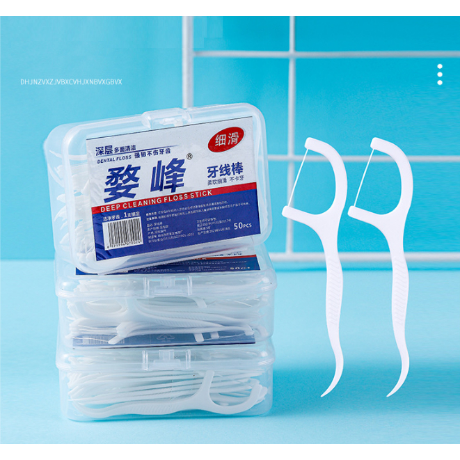Tăm Chỉ Nha Khoa Hộp 50 Cái Dental Floss Tăm Chỉ Vệ Sinh Răng Miệng XD