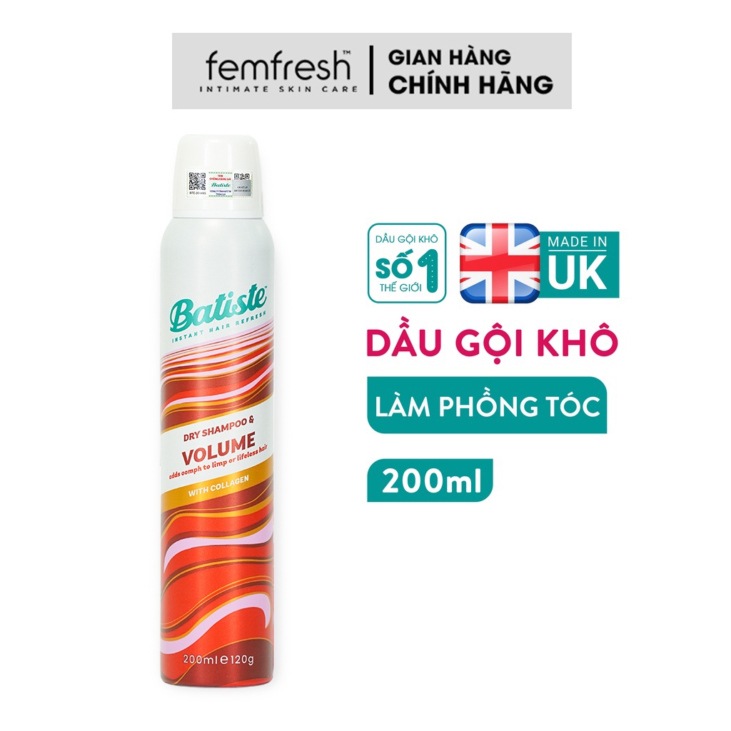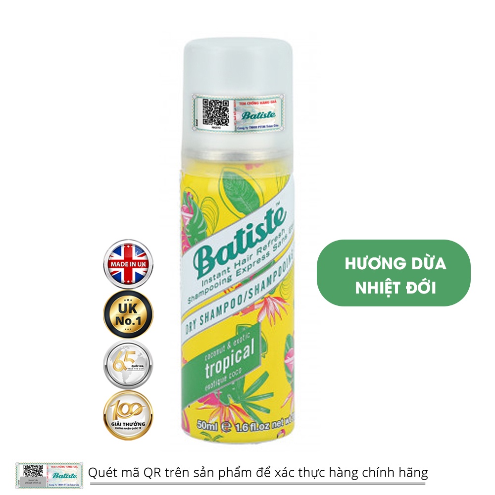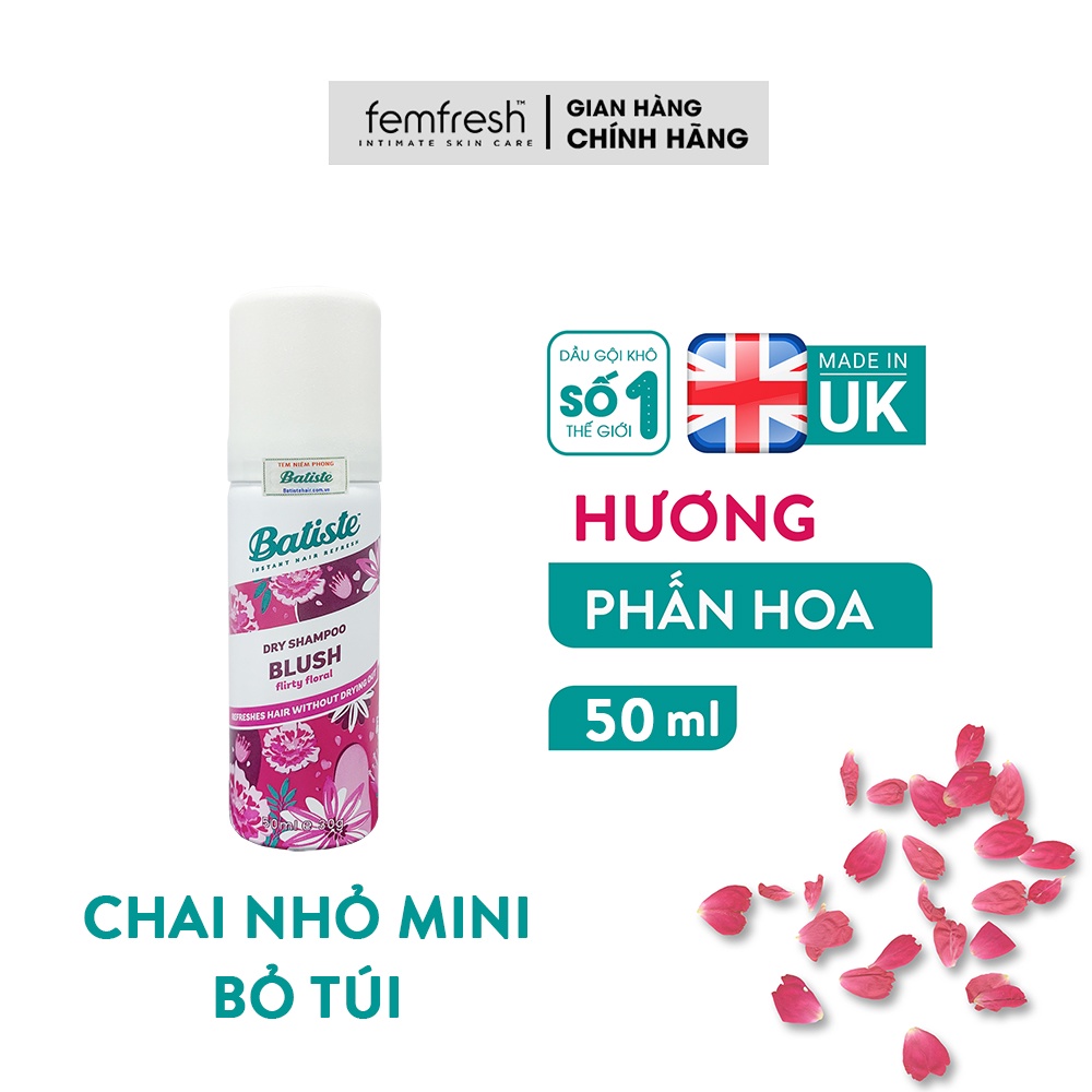 Dầu Gội Khô Mini Batiste Dry Shampoo Hết Ngứa, Hết Bết Dính Tóc Bồng Bềnh Tức Thì 200ml/50ml