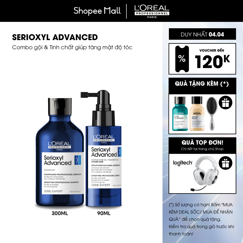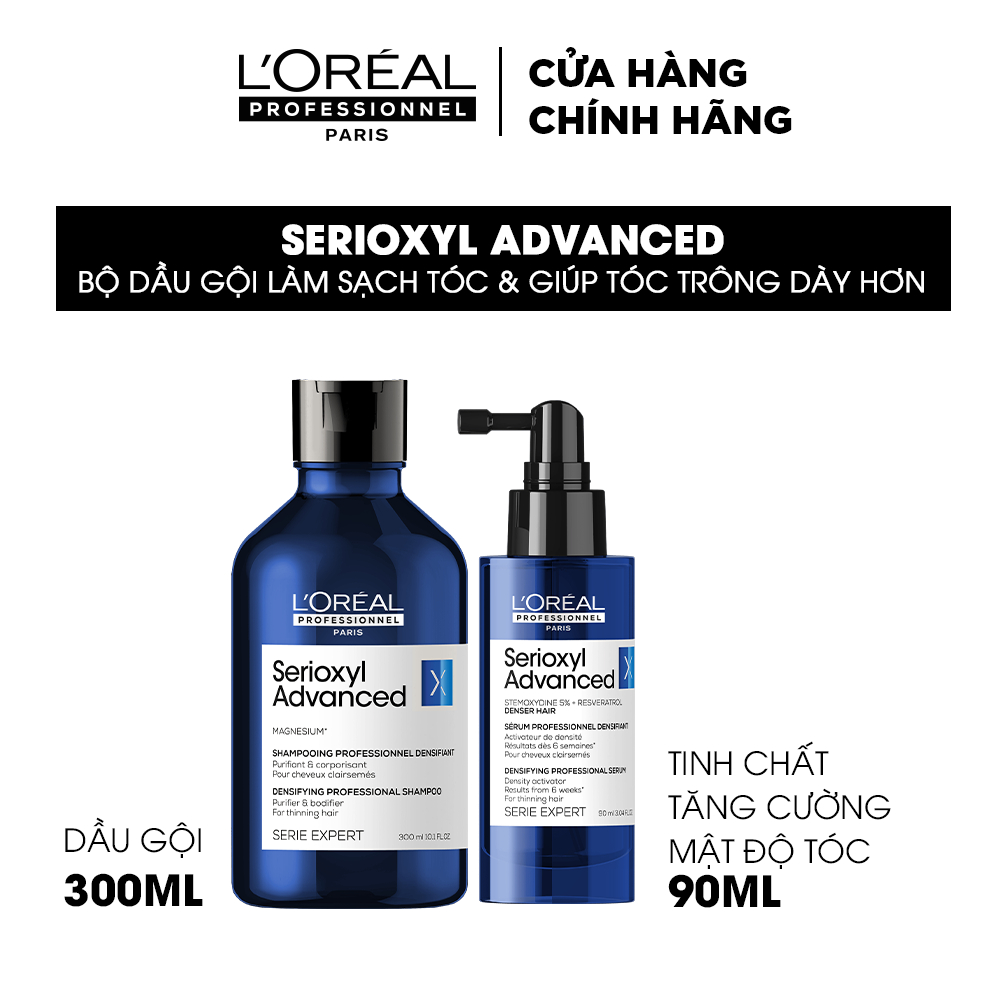 Combo Dầu gội 300ml & tinh chất xịt tăng mật độ tóc - làm dày tóc chuyên nghiệp L'Oréal Professionnel Serioxyl Advanced