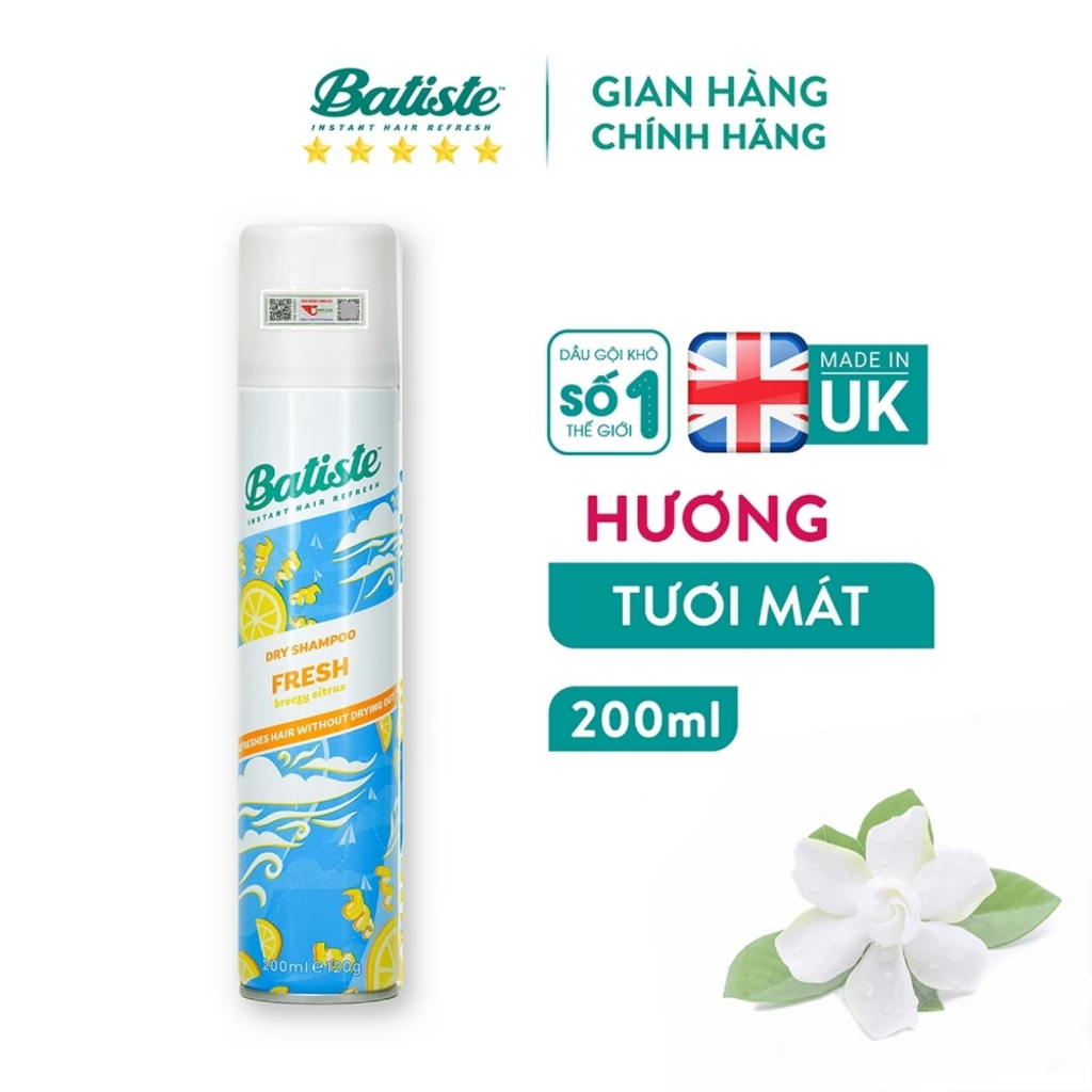 Dầu gội khô Batiste 200ml suôn mượt tóc tức thì, Batiste dầu gội khô chính hãng có tem, Meitu Beauty