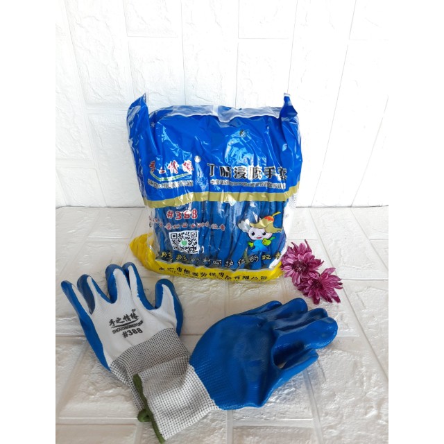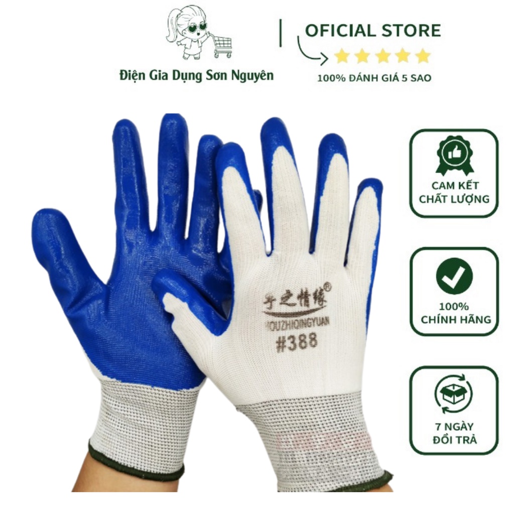 Găng Tay Bảo Hộ Lao Động Phủ Sơn Xanh Mã 388 Được Trang Bị Cho Công Nhân Bốc Xếp Hàng Hoá Xây Dựng...