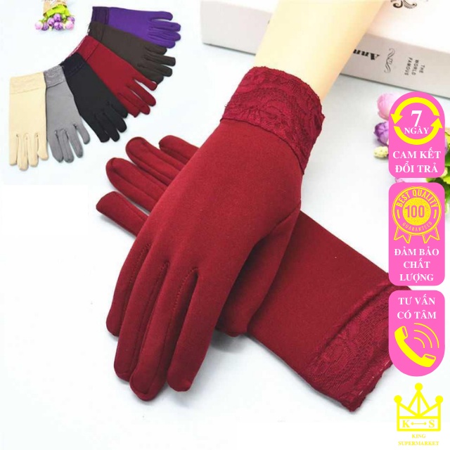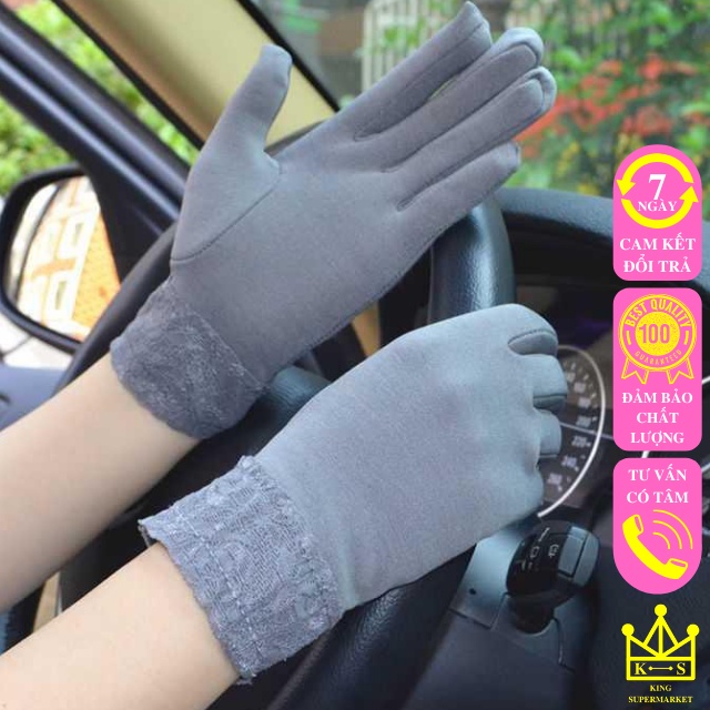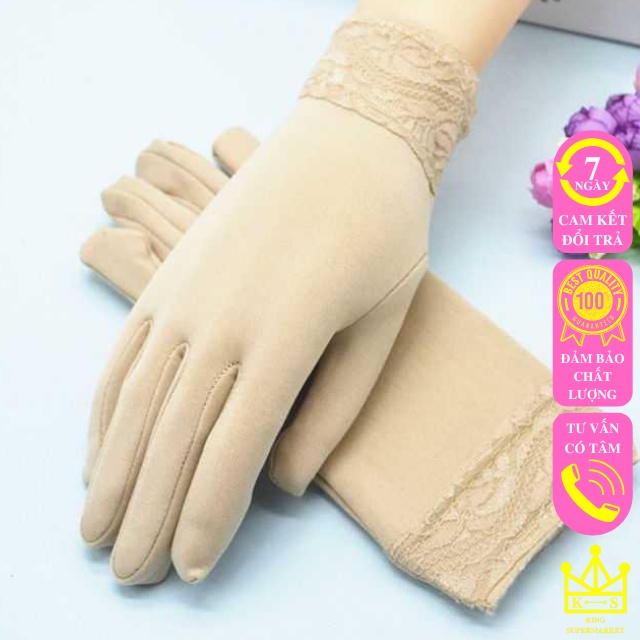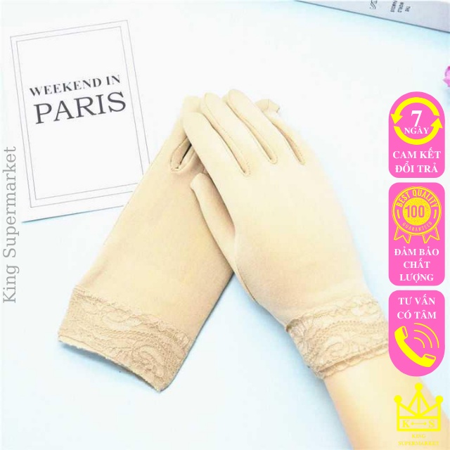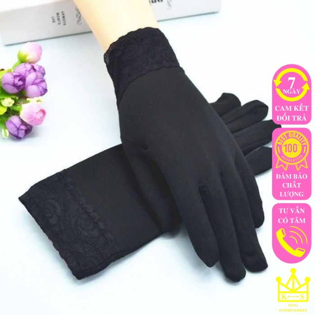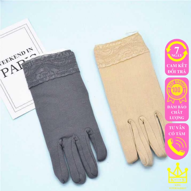 Găng tay chống nắng nữ xỏ ngón xe máy xe đạp dạng ngắn bao tay cản gió hoạ tiết phối ren nữ