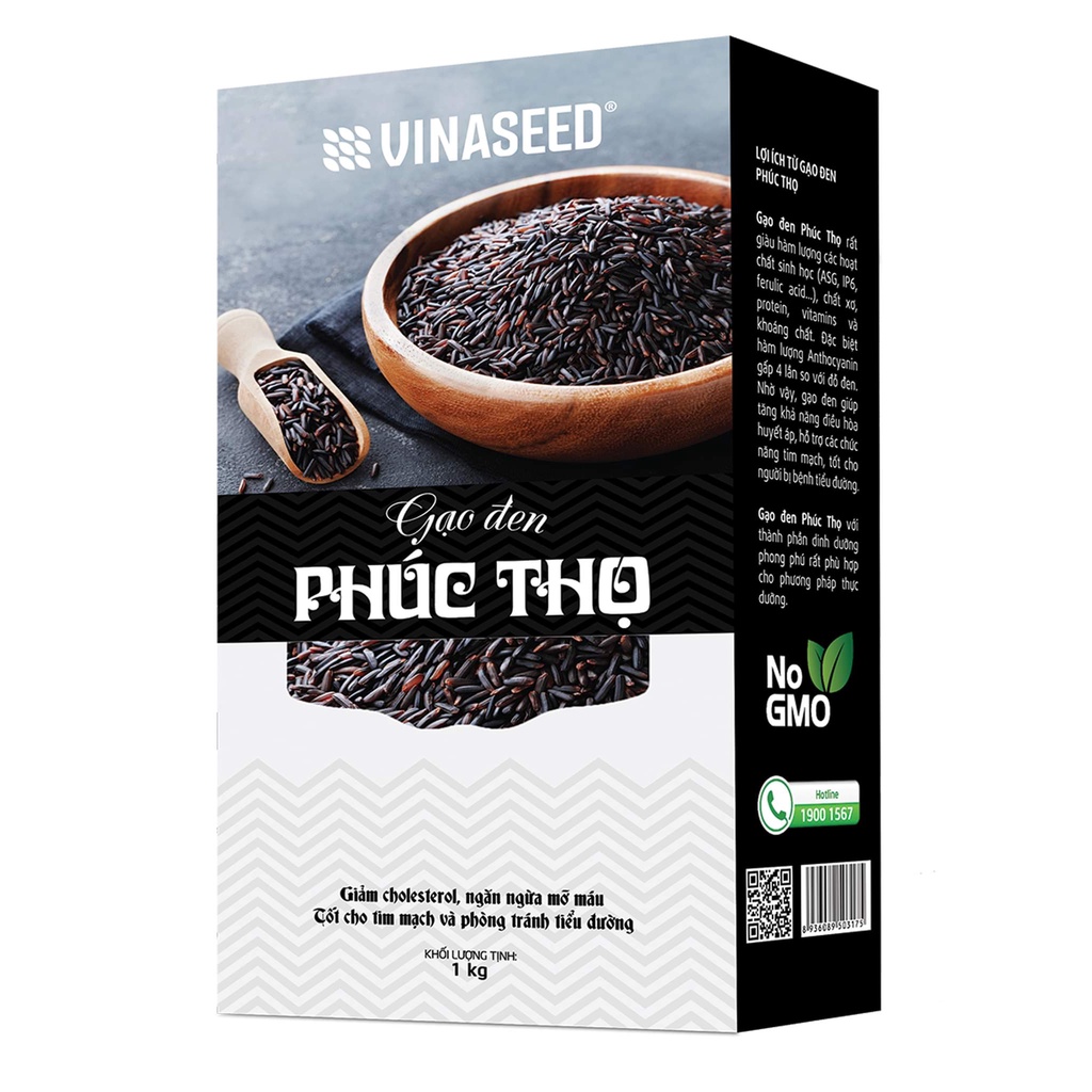 Gạo Lứt Đen Phúc Thọ Vinaseed túi 1kg - Gạo tím than dẻo dành cho người giảm cân, thực dưỡng, ăn kiêng, tiểu đường, bé