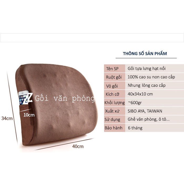 BẢO HÀNH 3 NĂM - Gối Tựa Chống Đau Mỏi Lưng Có Gai Massage. Đệm Lưng Cao Su Non Zuri Pillow GTL03