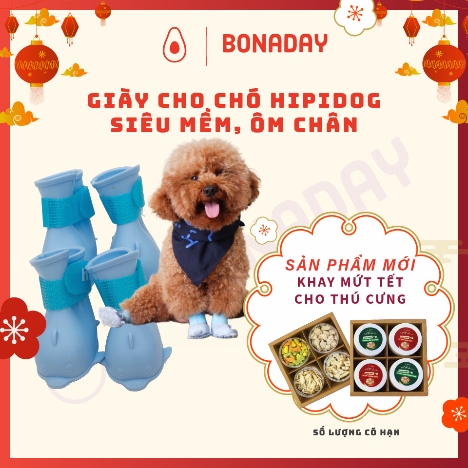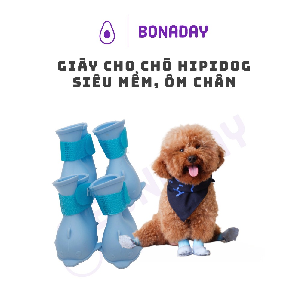 GIÀY CHO CHÓ HIPIDOG, BONADAY PETS, bộ 4 chiếc giày cao su mềm, chống nước, bảo vệ chân khỏi bụi bẩn, giày cho thú cưng
