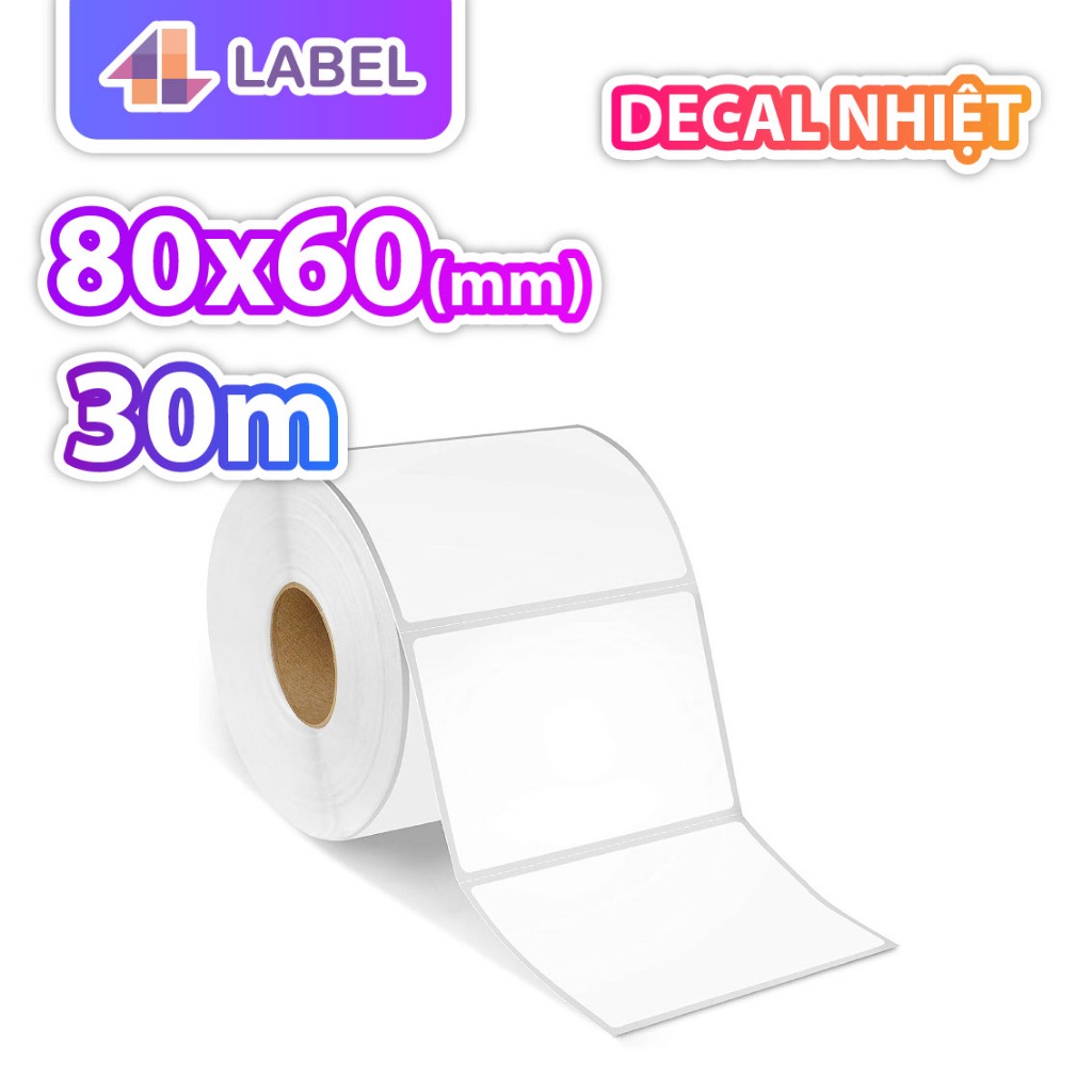 GIẤY IN NHIỆT 80x60 cuộn 30m - GIẤY NHIỆT CÓ KEO SẴN - tem phụ, tem sầu riêng, minicode, tem đồ gỗ