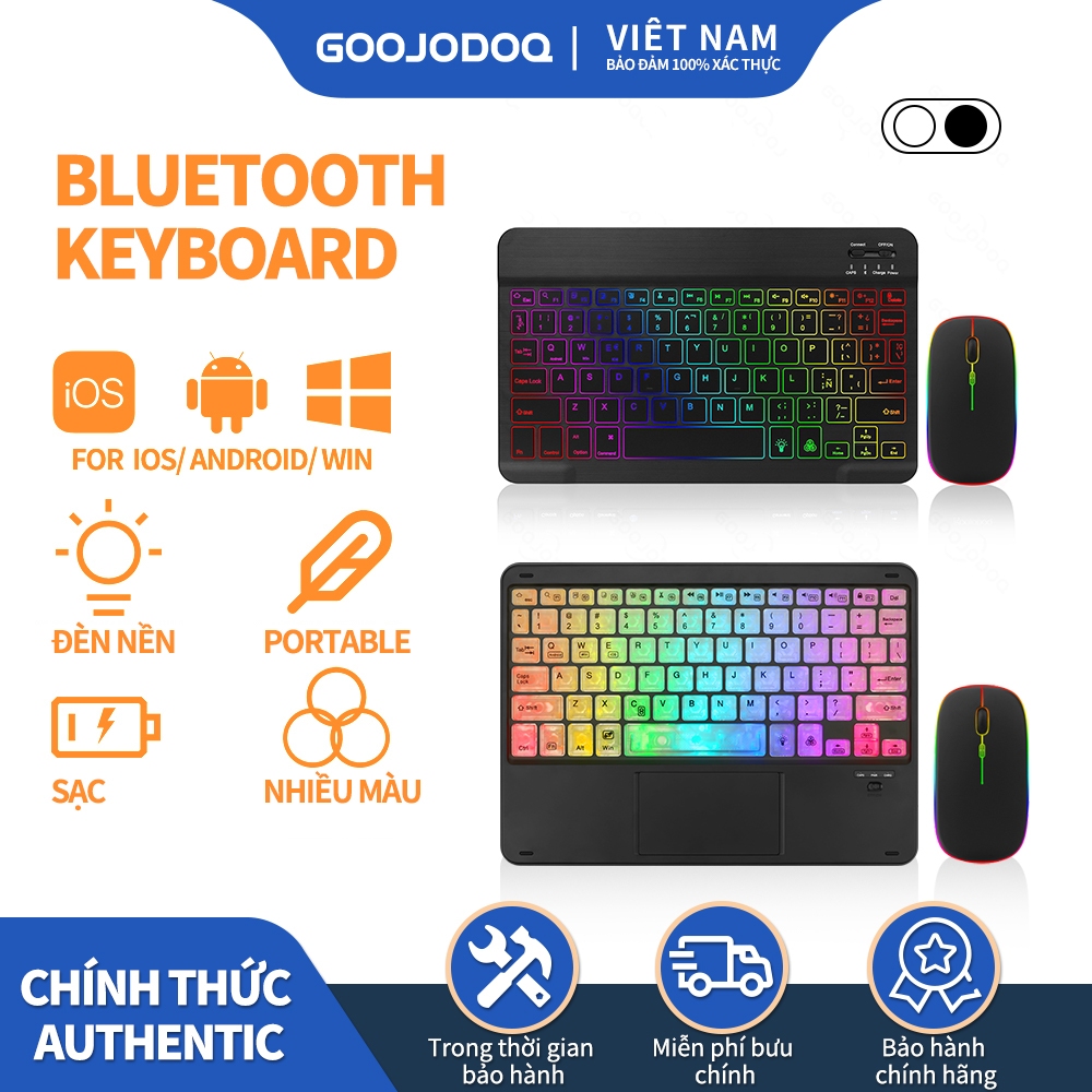 Bàn phím không dây goojodoq có đèn nền RGB màu cầu vồng và chuột cảm ứng thích hợp cho iPad iOS Android Windows