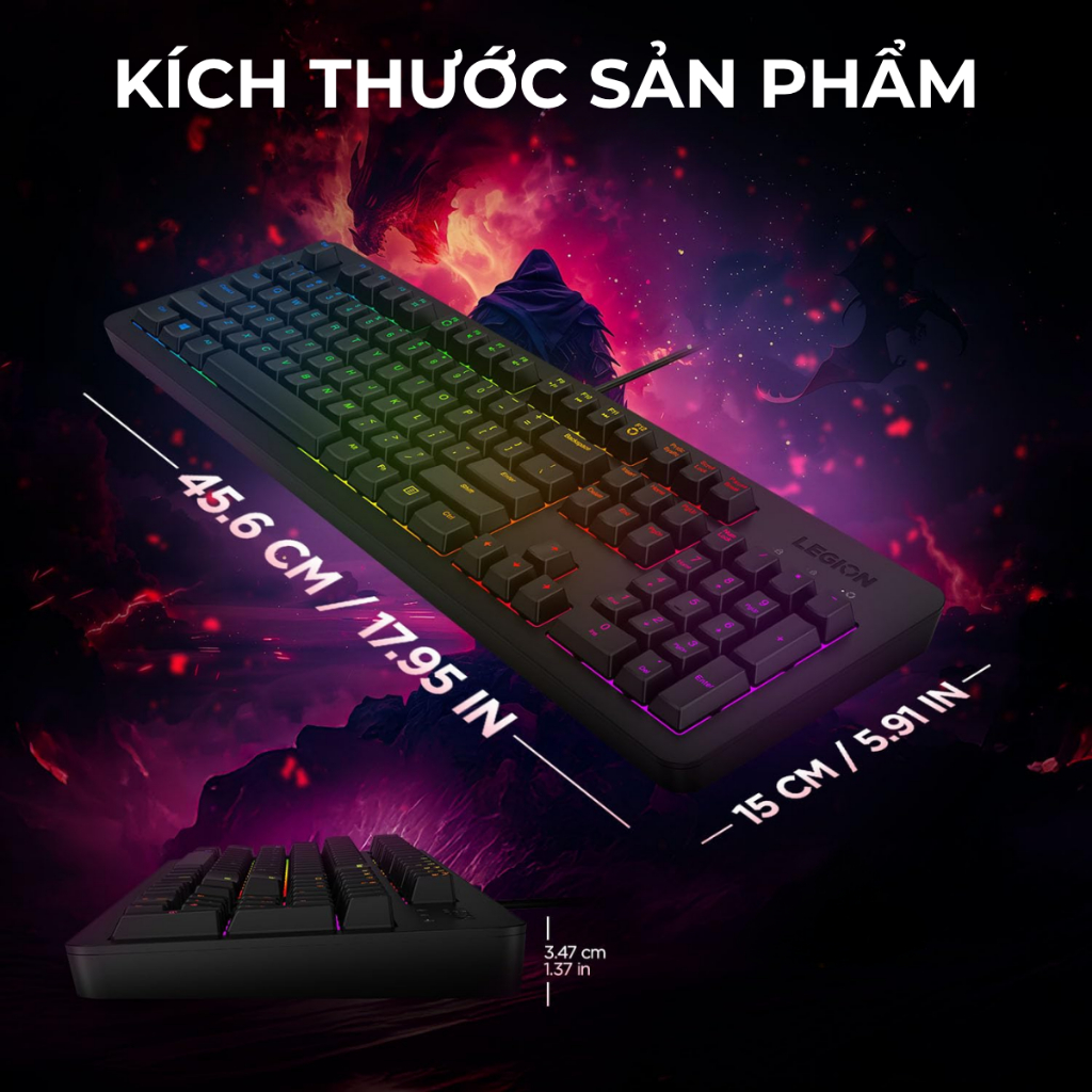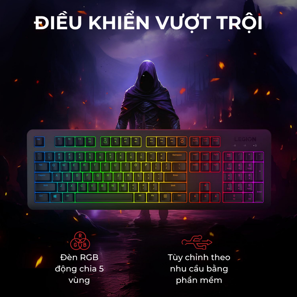 Bàn Phím Gaming Lenovo Legion K300 RGB GY40Y57708 | Anti-Ghosting 24 Phím | Membrane | USB | Đen