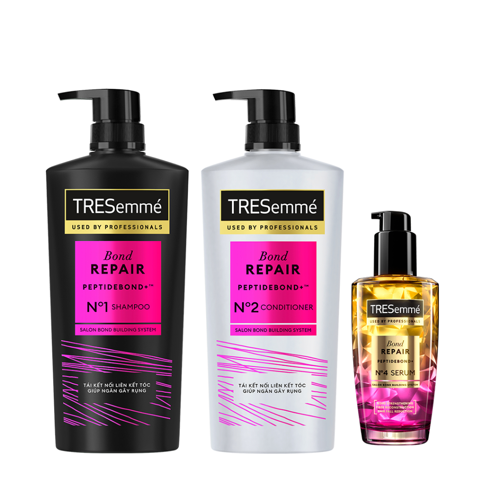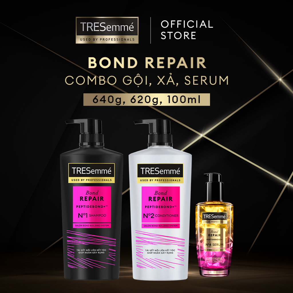 Combo 3 Bước TRESemmé Bond Repair Cho Tóc Hư Tổn Do Tạo Kiểu, Giúp Ngăn Gãy Rụng Dầu Gội 640g+Dầu Xả 620g+Serum 100ml