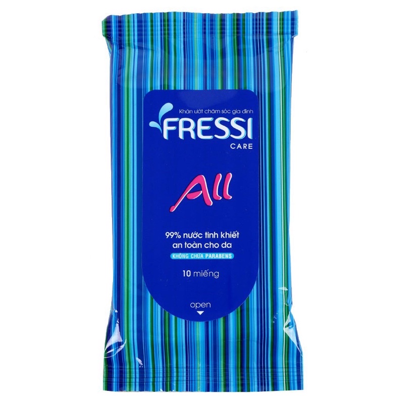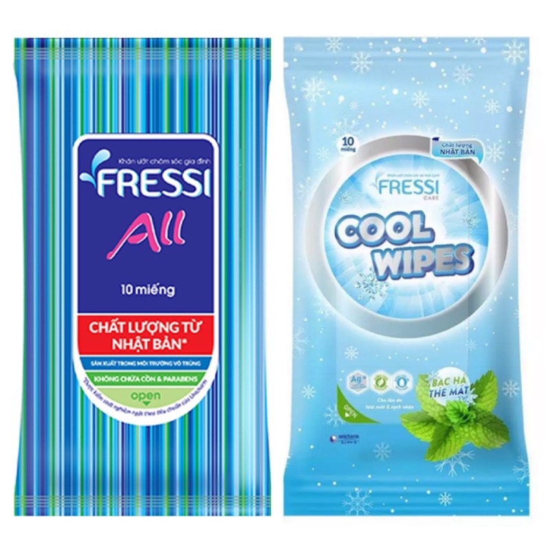 GIẤY ƯỚT/ KHĂN ƯỚT FRESSI ALL/ COOL WIPES BẠC HÀ THE MÁT GÓI 10 TỜ