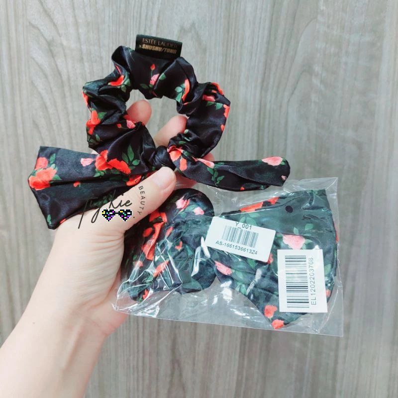 [ Gift 2023 ] Dây Cột Tóc Ét Te Shushu Tong Hoa Nền Đen