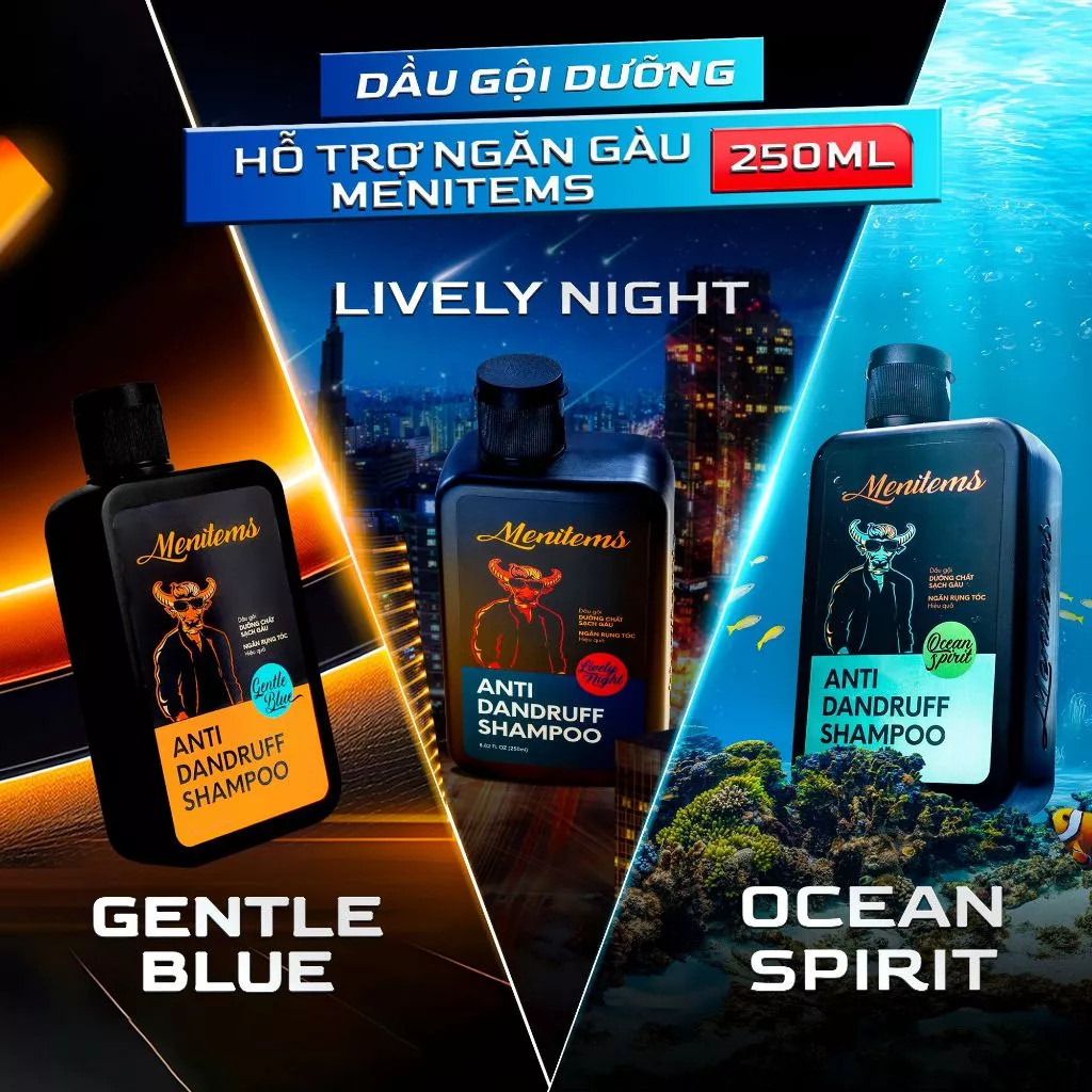 Dầu gội Menitems dưỡng tóc | Dầu gội hỗ trợ giảm gàu - Phục hồi hư tổn - Hương nước hoa nam tính