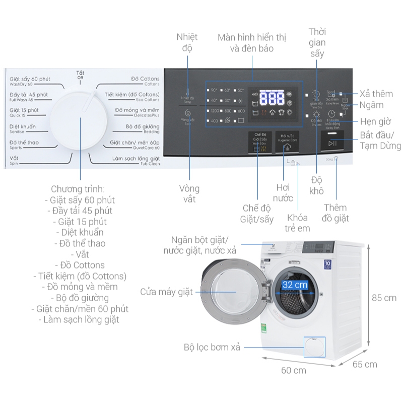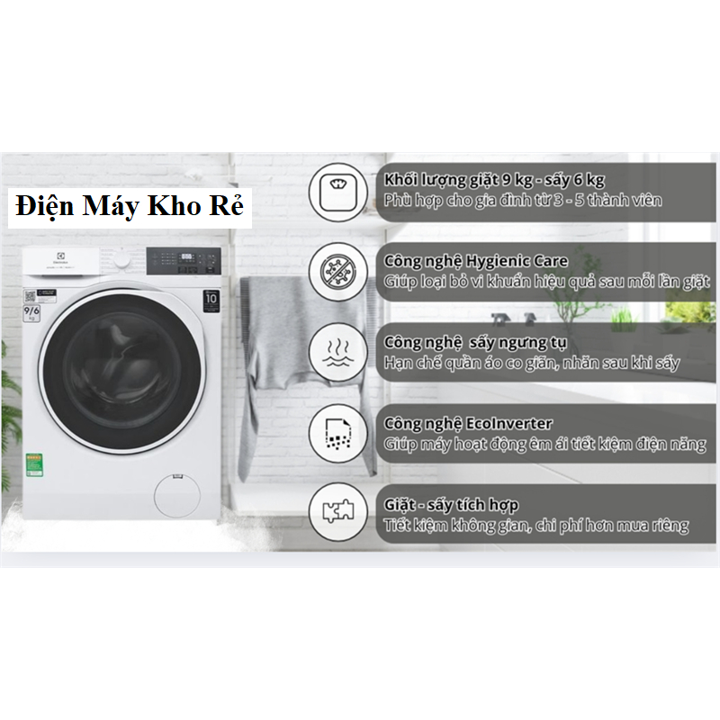 Máy giặt sấy Electrolux UltimateCare 300 Inverter giặt 9 kg - sấy 6 kg EWW9024P3WC 2024 - Dienmaykhore