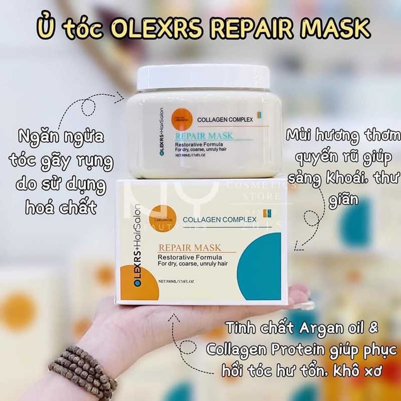 Kem Ủ Tóc Olexrs Hairsalon Argan Oil Collagen Complex Phục Hồi Tóc Hư Tổn 500ml