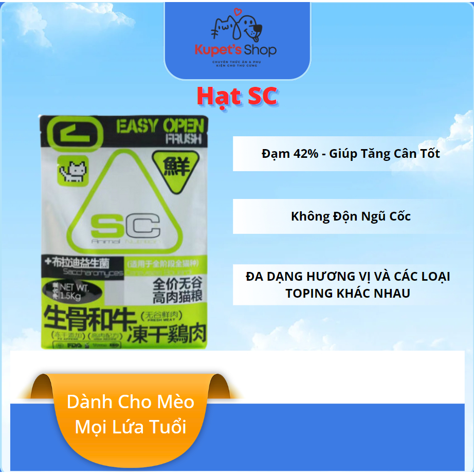 Hạt SC cho mèo mọi lứa tuổi , bổ sung men vi sinh , protein lên đến 42%