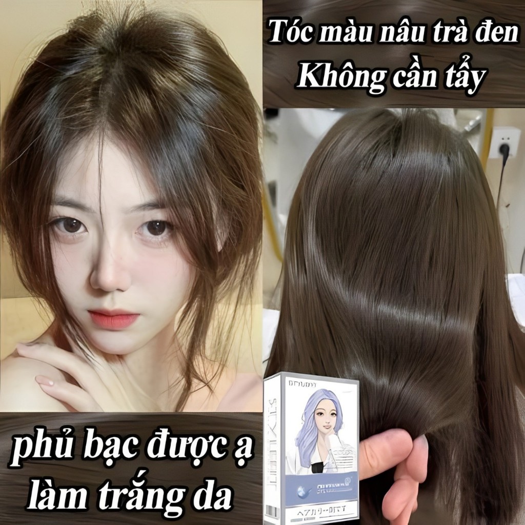 Không phai trong 360 ngày🍎Thuốc Nhuộm Tóc,nâu xám hạt dẻ,Không cần tẩy,thuốc nhuộm tóc nâu lạnh,Màu sắc trong một bước