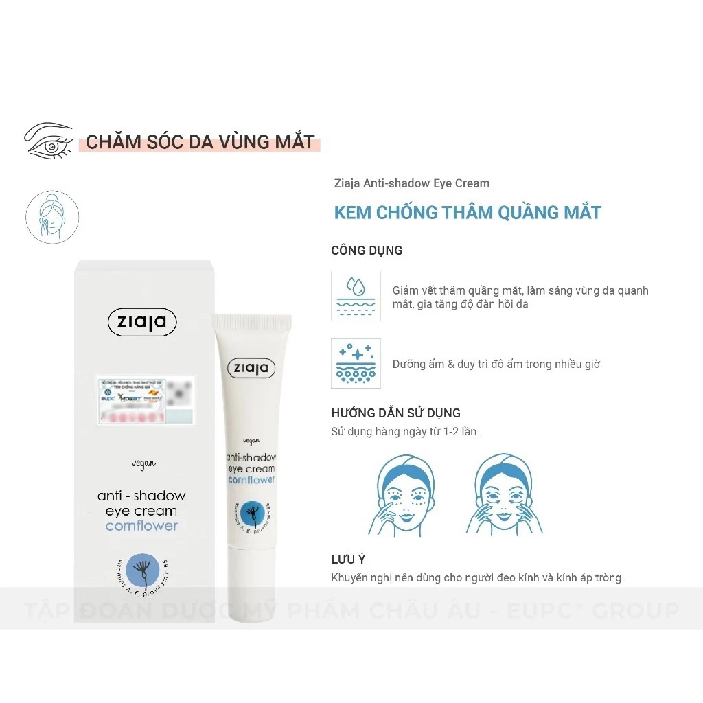 Kem Giảm Thâm Quầng Mắt Ziaja Anti-shadow Eye Cream 15ml - Dr Thêm