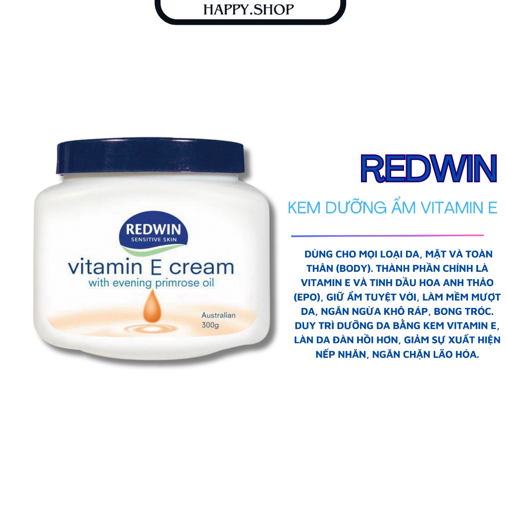 Kem dưỡng ẩm da Vitamin E Cream, Kem dưỡng da chống nẻ mềm mịn Redwin 300g giúp cấp ẩm cho da