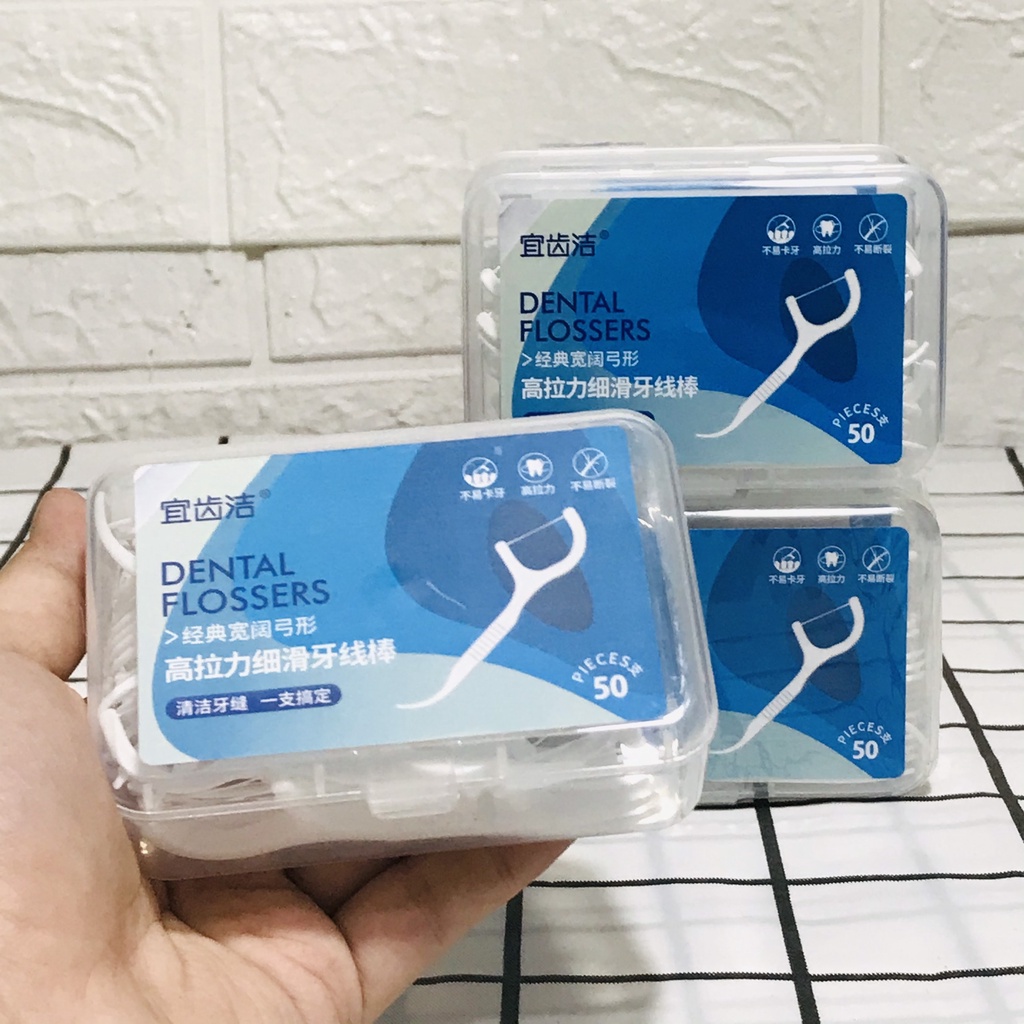 Hộp 50 Chiếc Tăm Chỉ Nha Khoa Triệt Trùng Vệ Sinh Răng Miệng DENTAL FLOSSERS