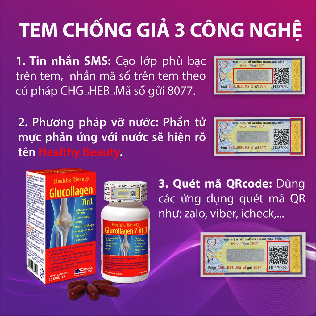 Viên uống bổ xương khớp GLUCOLLAGEN 7 IN 1 Healthy Beauty tái tạo sụn khớp, thoái hóa khớp gối 7in1