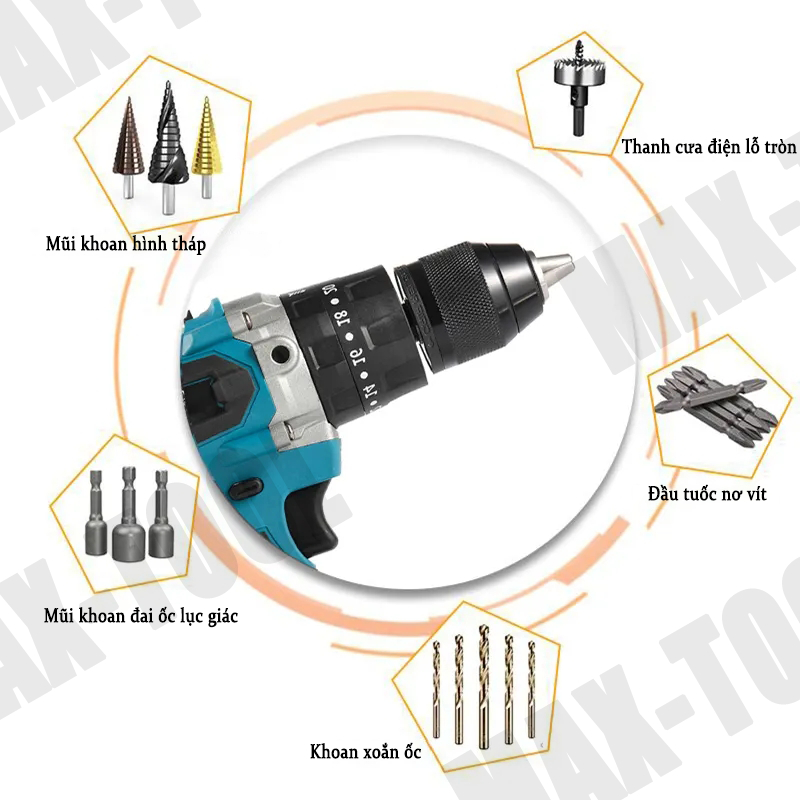 Tuốc nơ vít - Makita Máy Khoan Điện Không Chổi Than Không Dây 13Mm 20 + 3 Mô-men Xoắn Tương Thích Với Makita 18V 5.0Ah Máy Vặn Vít Điện Thân máy Khoan Tác Động