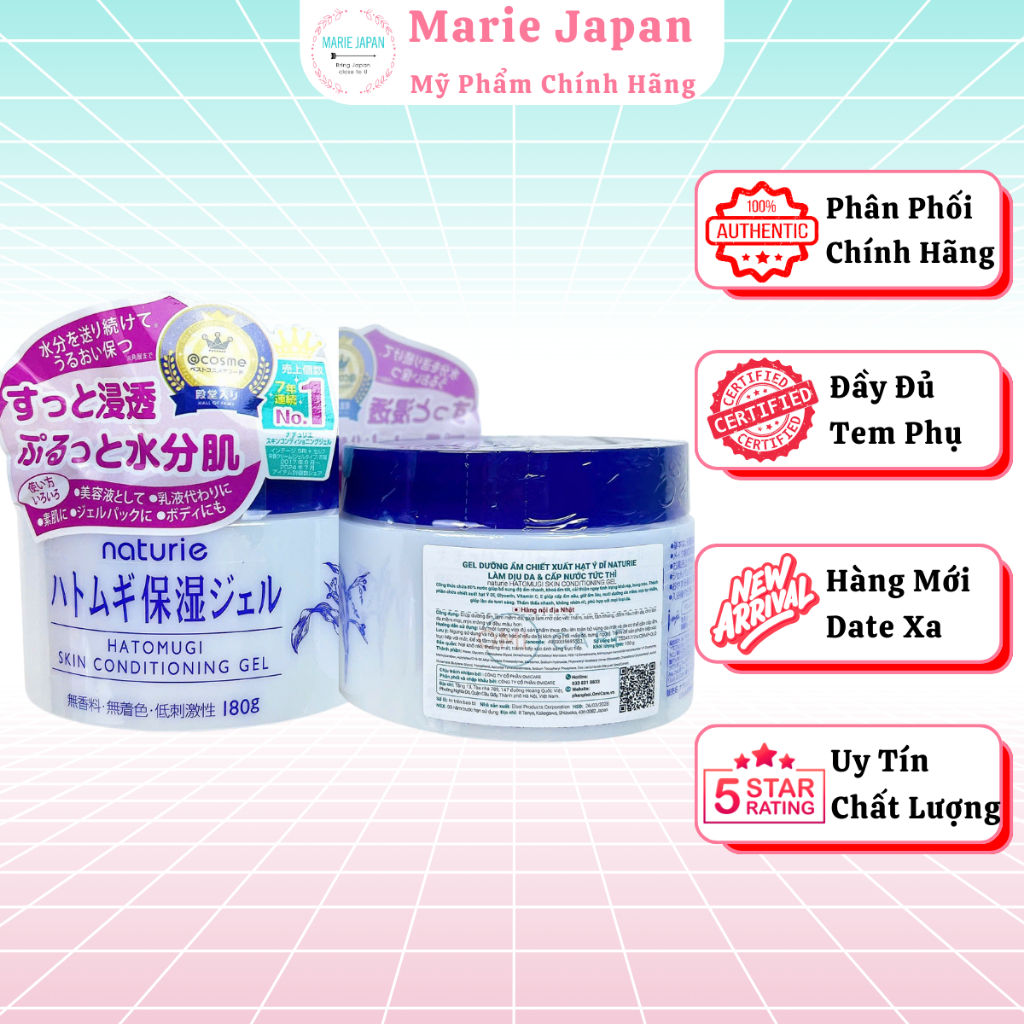 Gel Naturie dưỡng ẩm sáng da chiết xuất ý dĩ Hatomugi Skin Conditioning 180g Nhật Bản