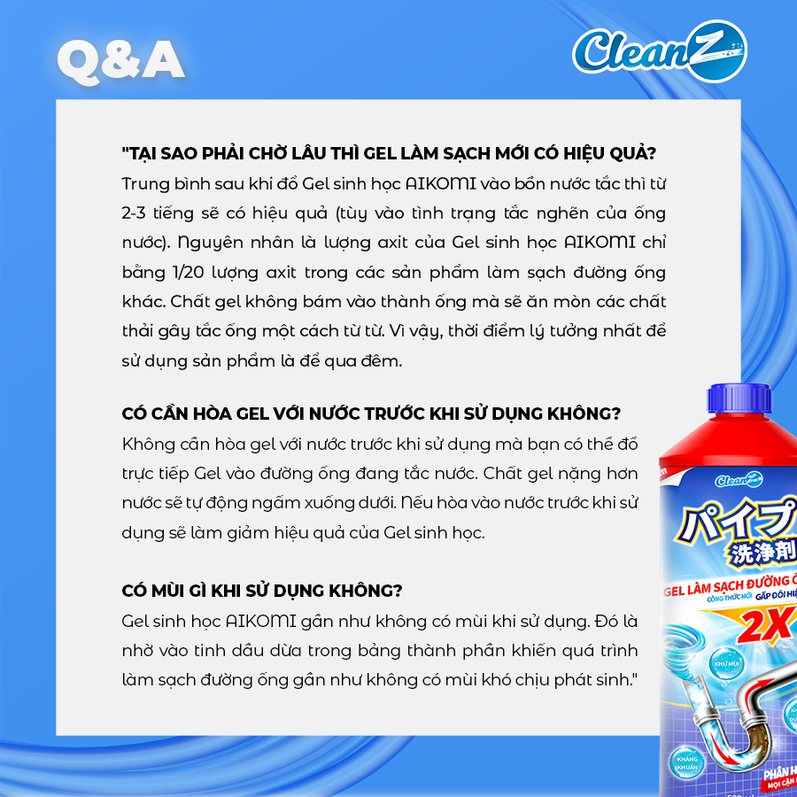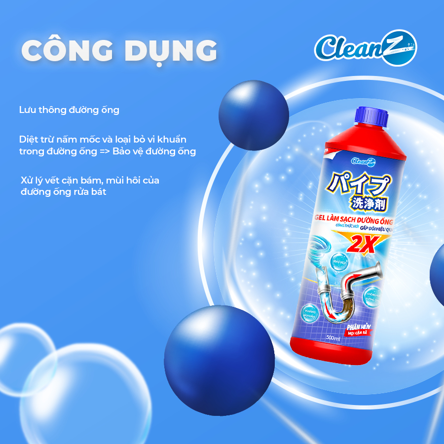 Gel sinh học CleanZ phòng tắc nghẽn, làm sạch đường ống rửa bát, rửa mặt, khử mùi hôi hiệu quả