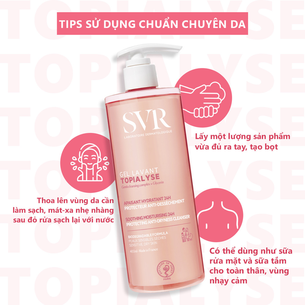 Gel rửa mặt không xà phòng cho da khô, nhạy cảm SVR Topialyse Gel Lavant 400ml
