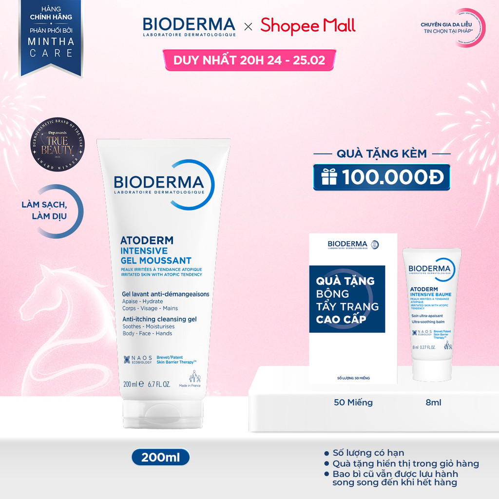 Gel làm sạch dịu nhẹ cho da rất khô , nhạy cảm dễ bị kích ứng Bioderma Atoderm Intensive Gel Moussant - 200ml