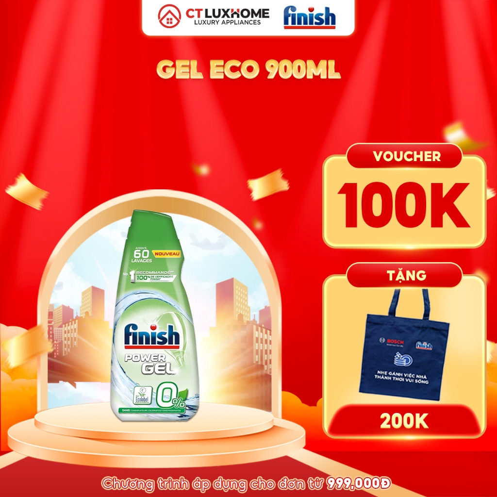 Gel rửa chén bát Finish Eco 0% PowerGel 900ml